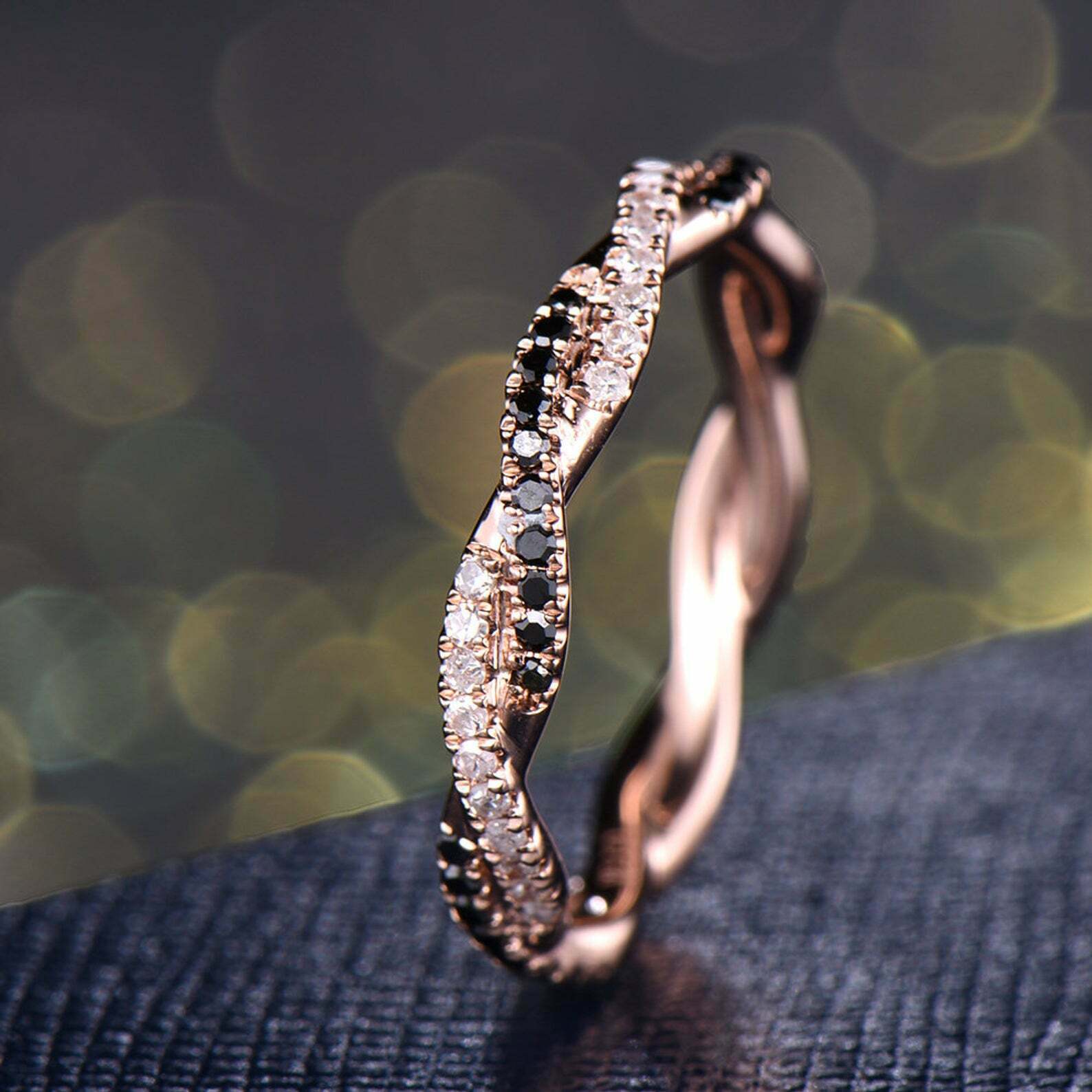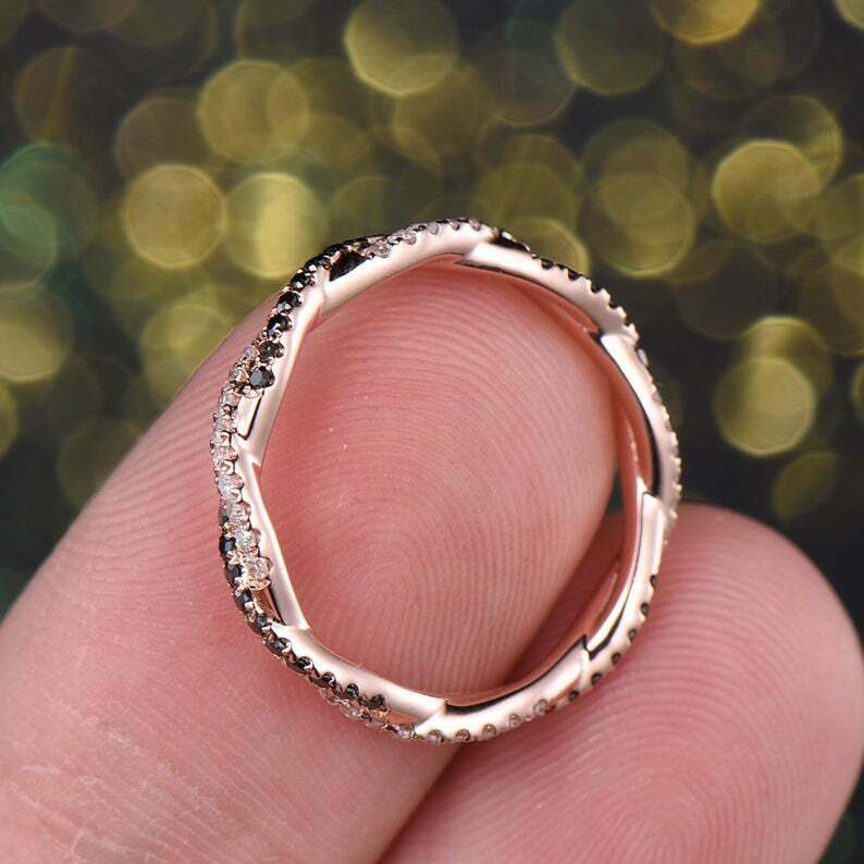 1.5ct Round Cut Black & White Diamond Infinity Eternity Band 14k RoseGold Finish