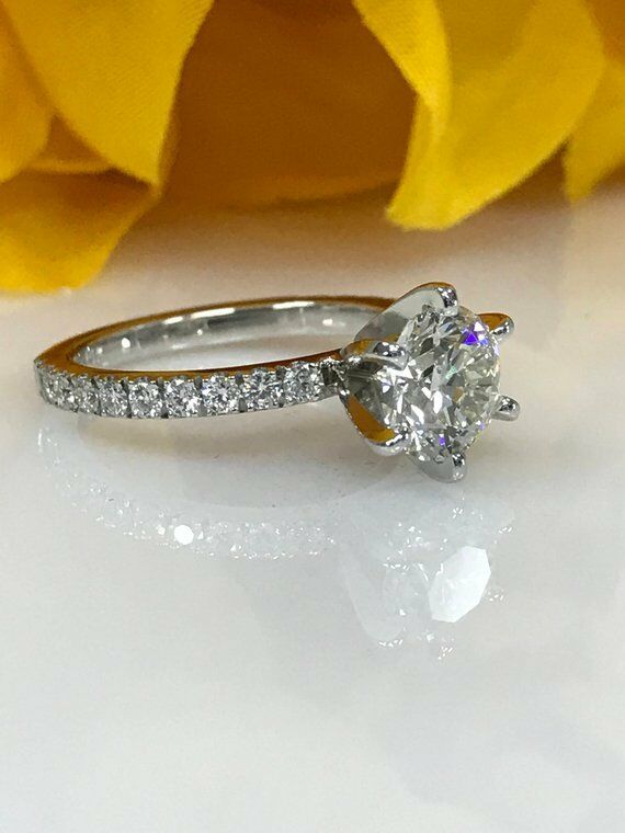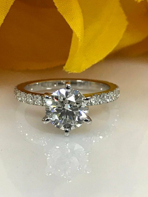 1.5ct Round Cut Diamond 6 Prong Solitaire Engagement Ring 14k White Gold Finish