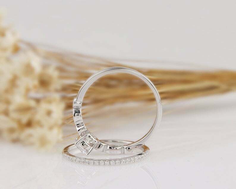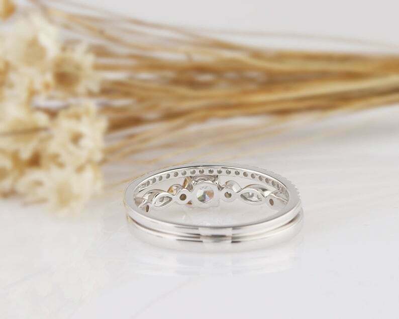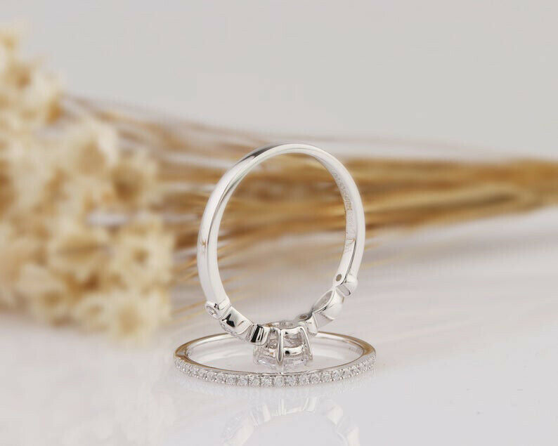 1.5ct Round Cut Diamond Bridal Set Engagement Ring Band 14k White Gold Finish