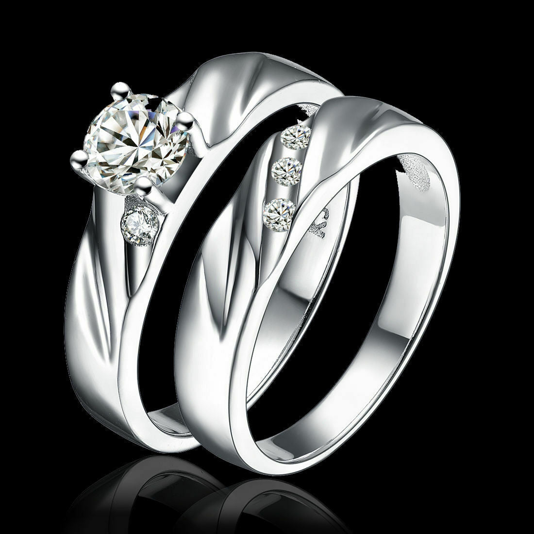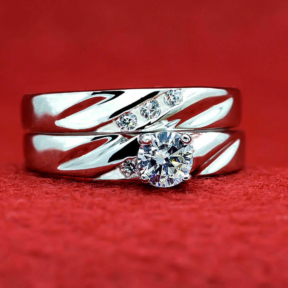 1.5Ct Round Cut Diamond Bridal Set Matching Ring Band 14K White Gold Finish