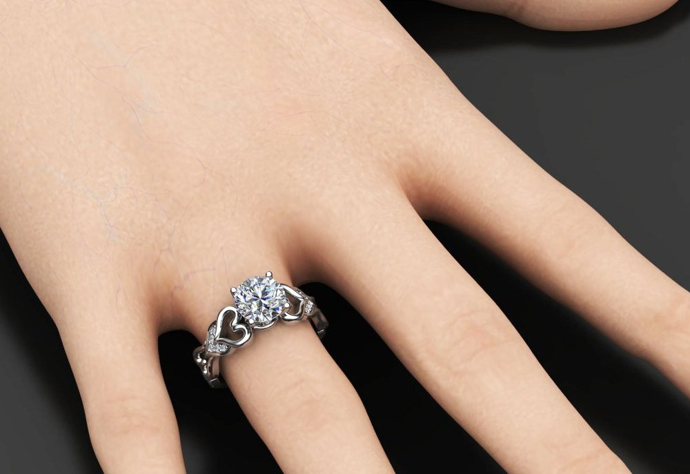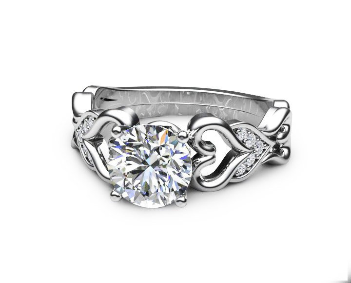 1.5ct Round Cut Diamond Engagement Ring 14k WhiteGold Finish Unique Heart Shaped
