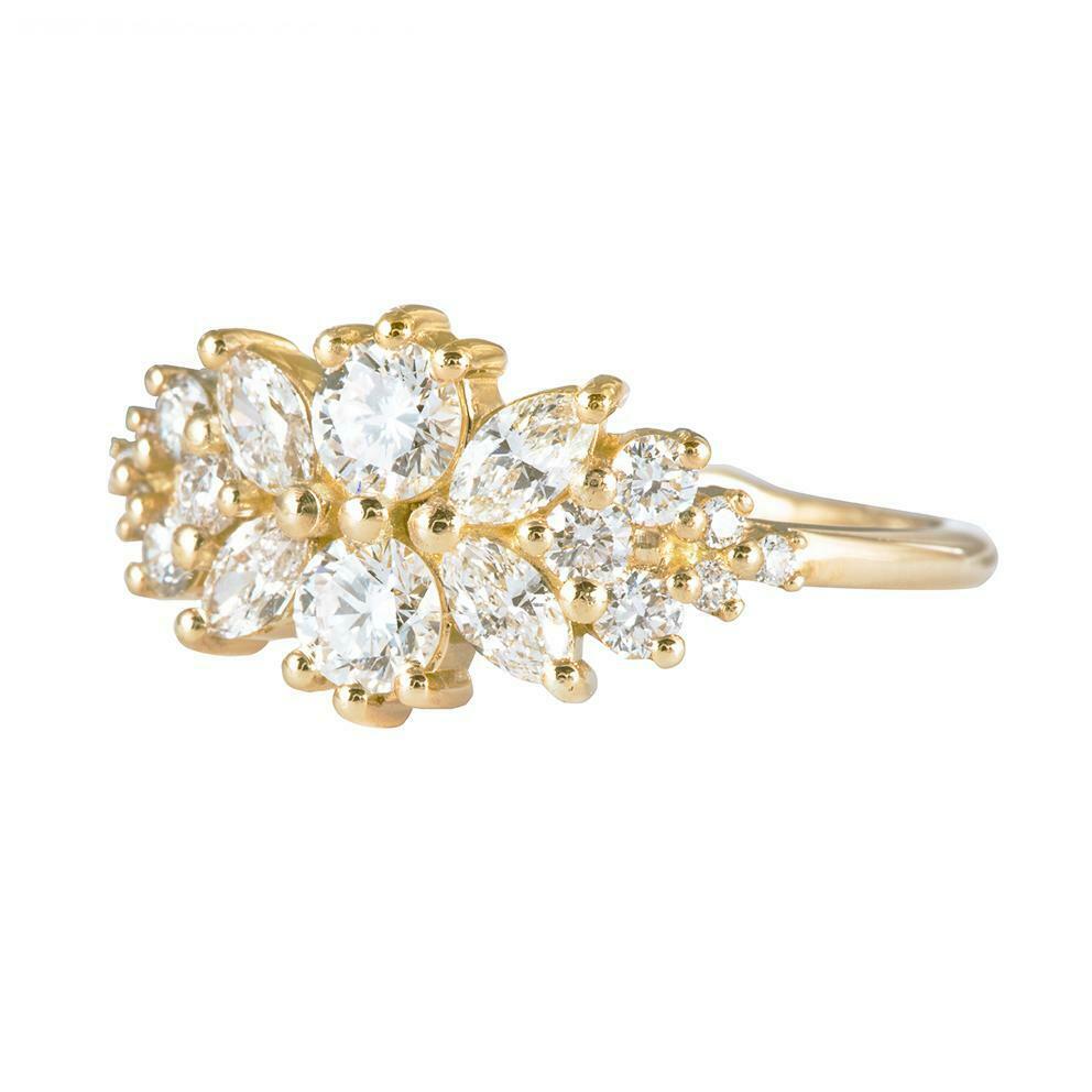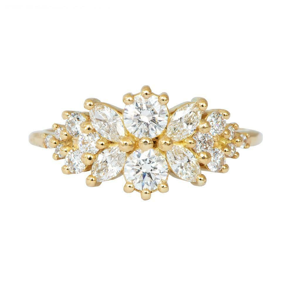 1.5ct Round Cut Diamond Engagement Ring 14k Yellow Gold Finish Cluster Tiara