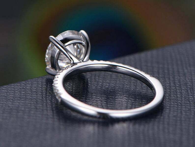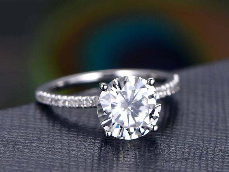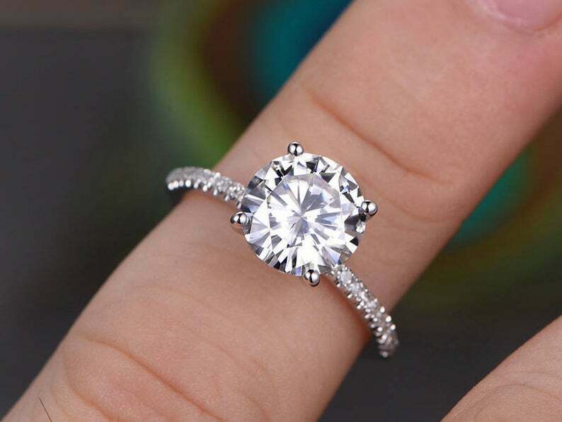 1.5ct Round Cut Diamond Engagement Ring Accents Solitaire 18k White Gold Finish
