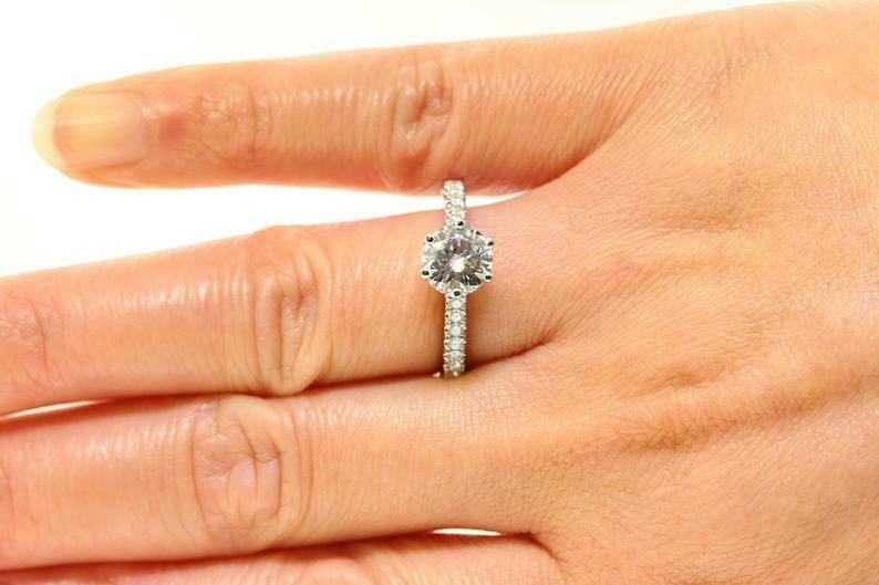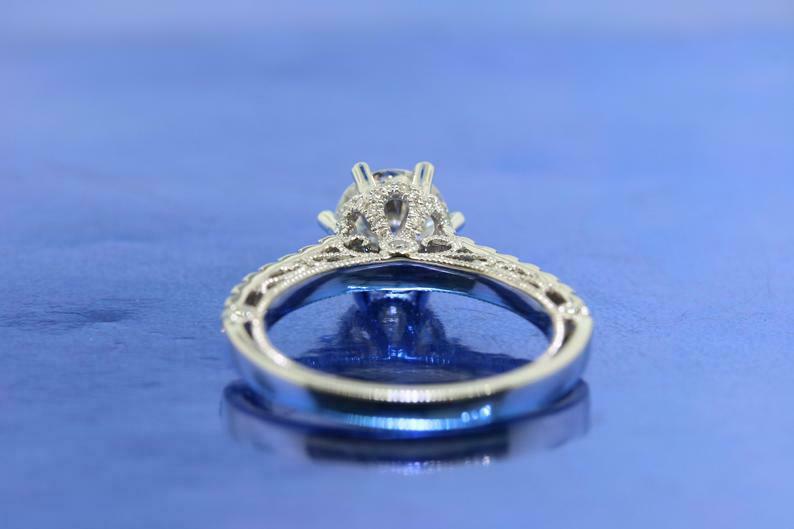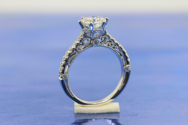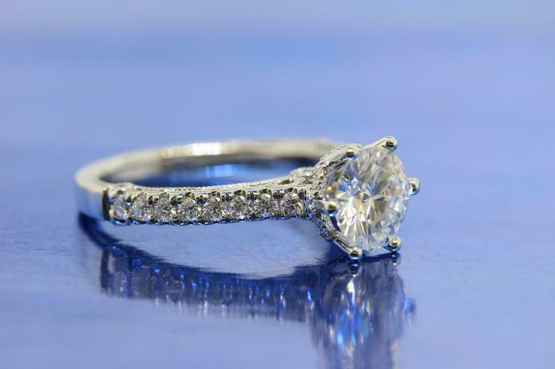 1.5ct Round Cut Diamond Engagement Ring Antique Milgrain 14k White Gold Finish