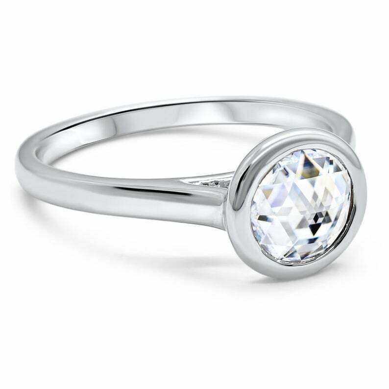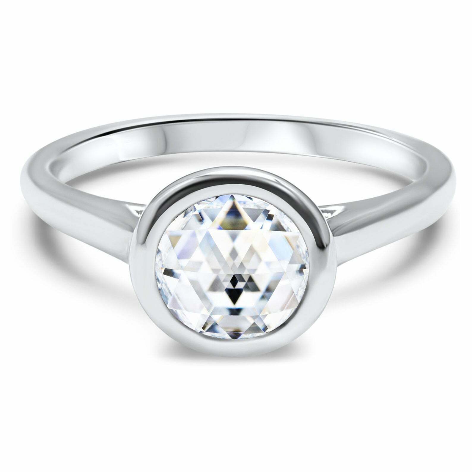 1.5ct Round Cut Diamond Engagement Ring Bezel Set Solitaire 14k White Gold Over
