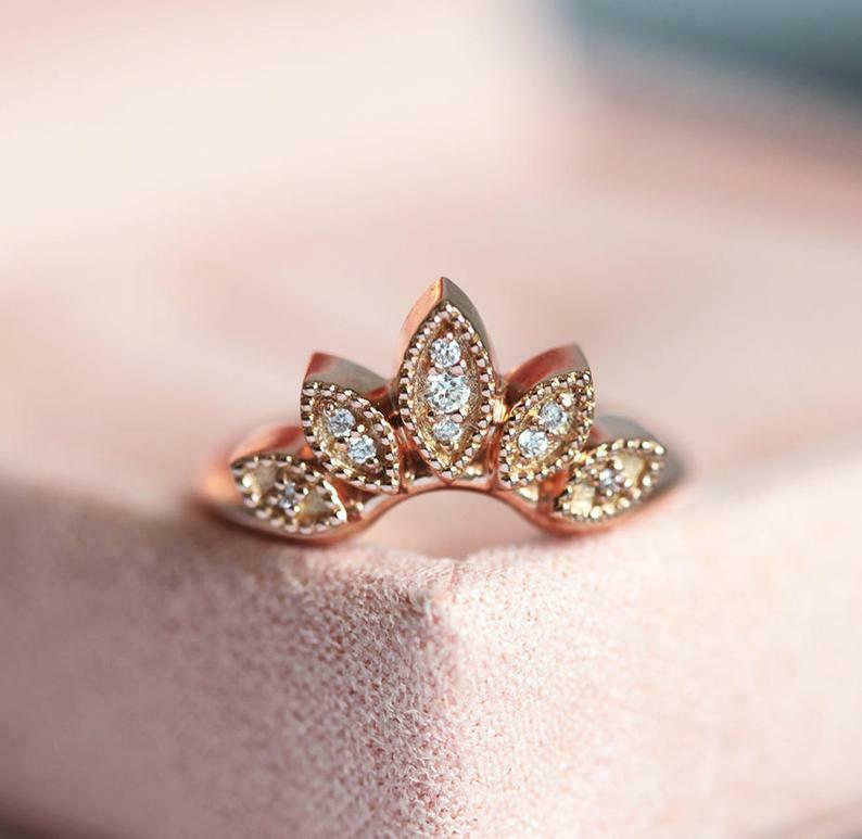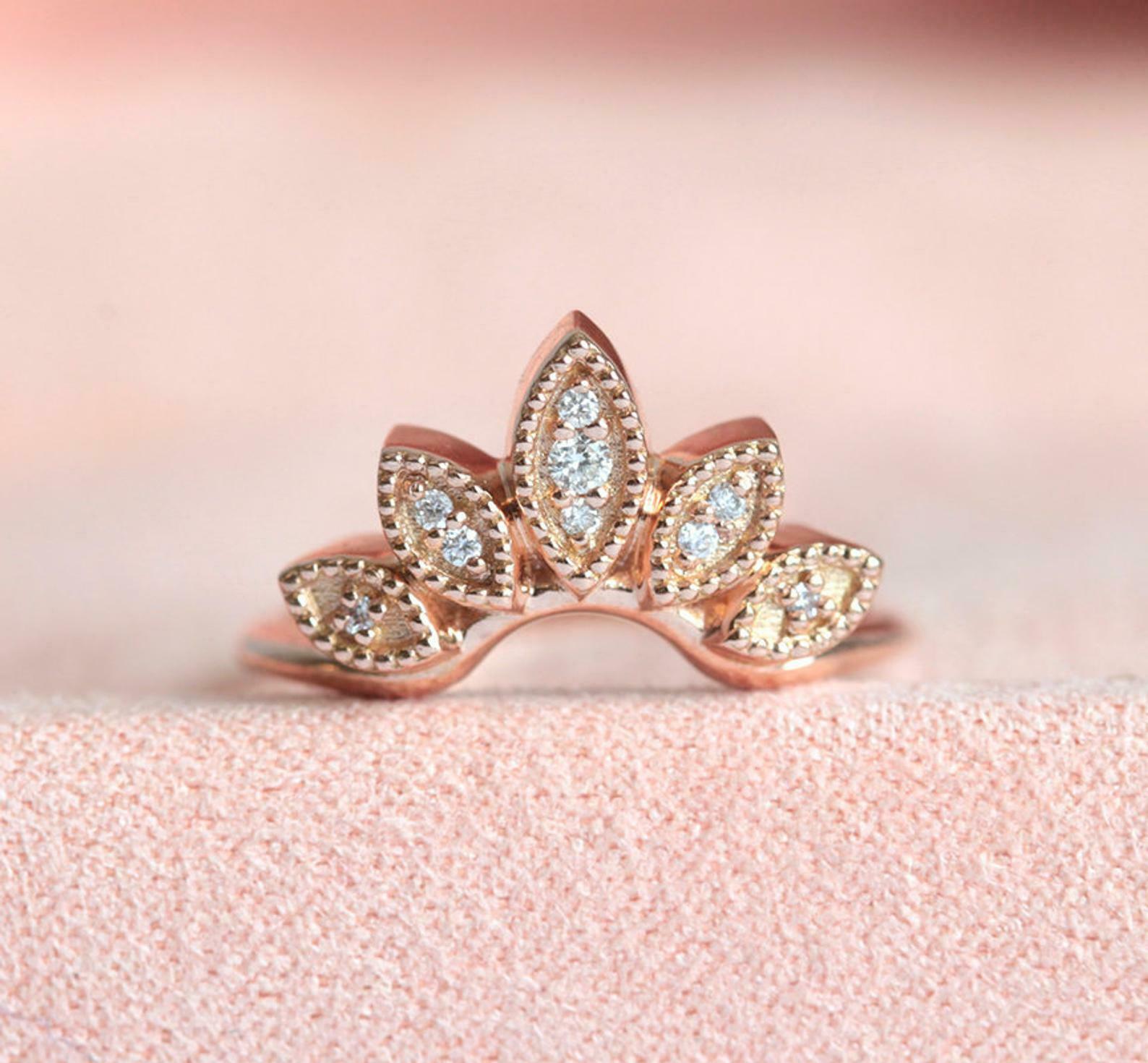 1.5ct Round Cut Diamond Engagement Ring Crown Bridal Set 14k Rose Gold Finish