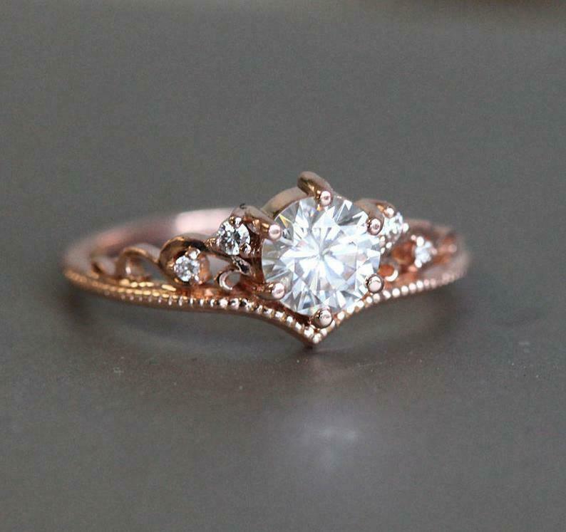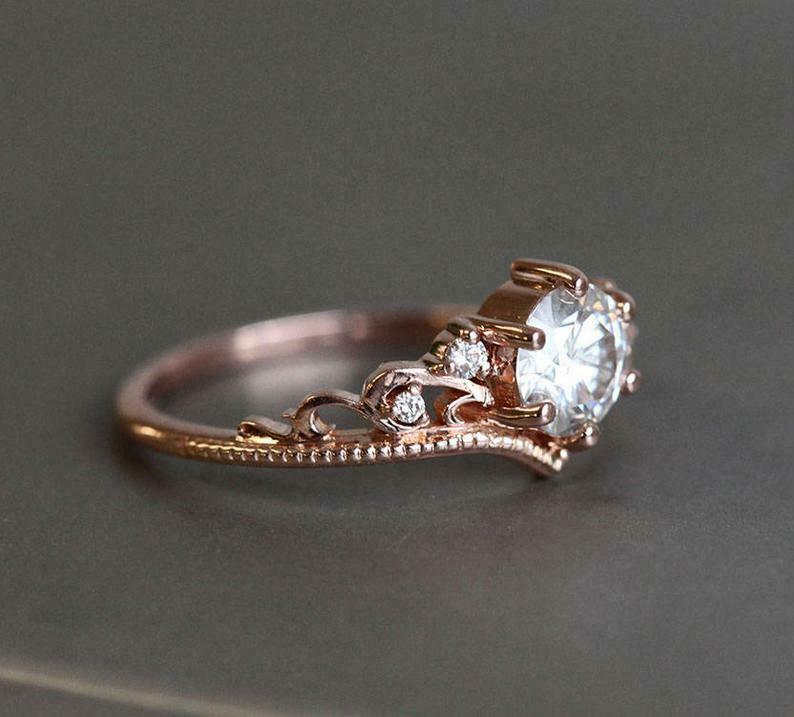 1.5ct Round Cut Diamond Engagement Ring Crown Tiara Bridal Set 14k RoseGold Over