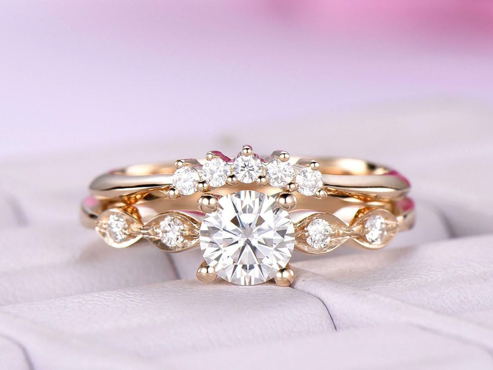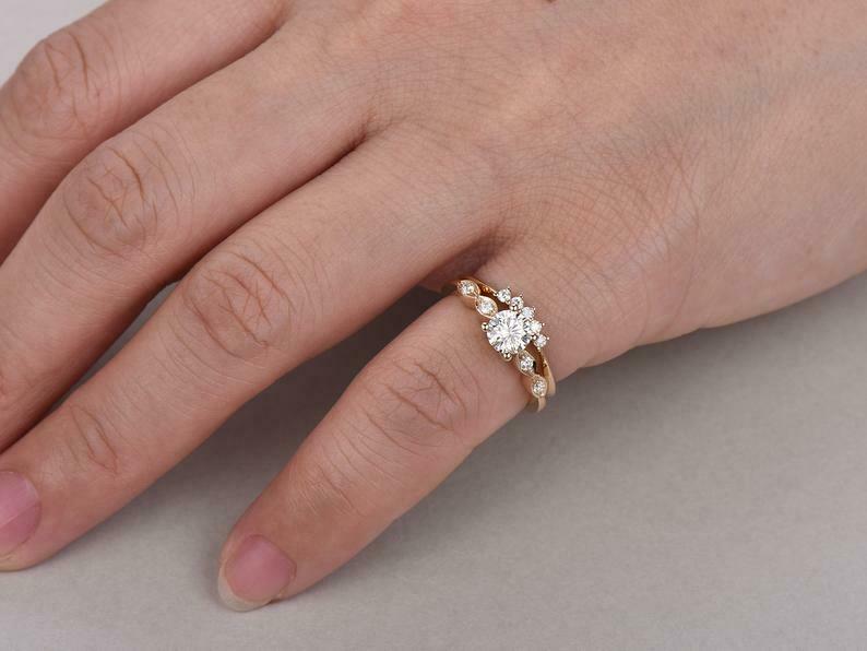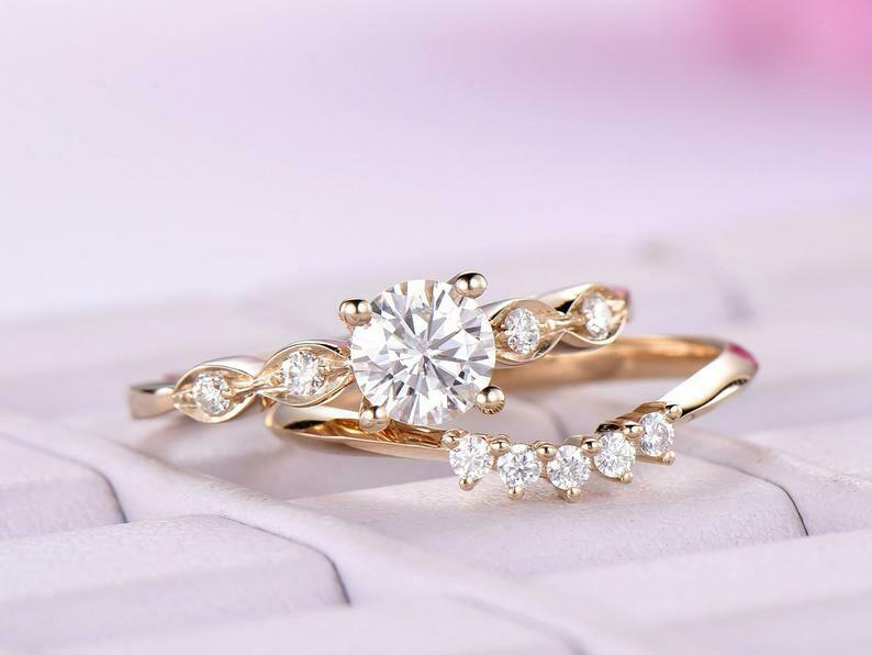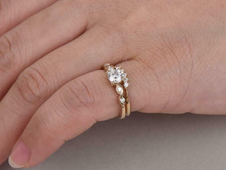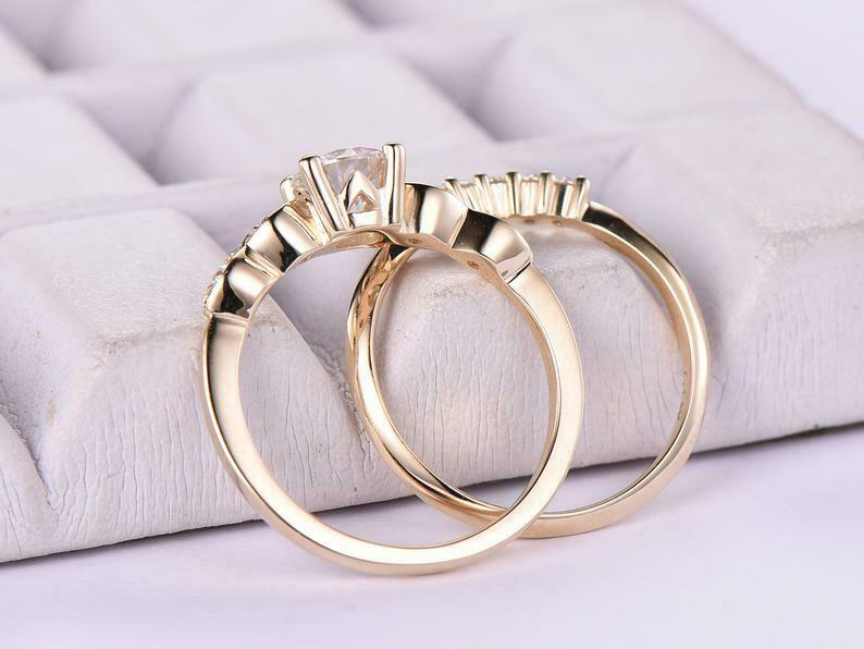1.5ct Round Cut Diamond Engagement Ring Curved Bridal Set 14k Yellow Gold Finish