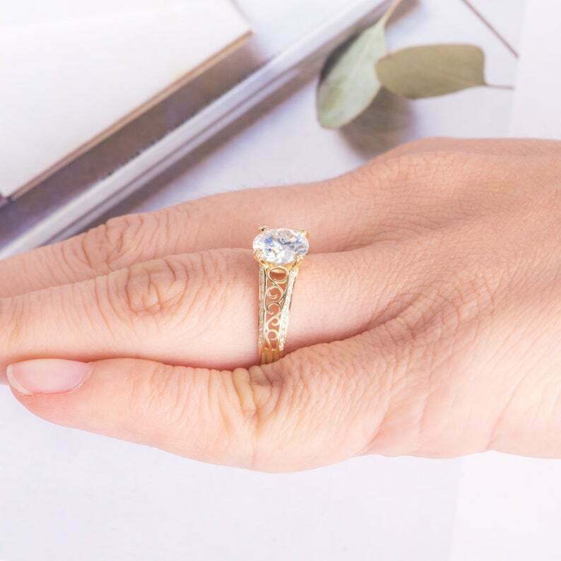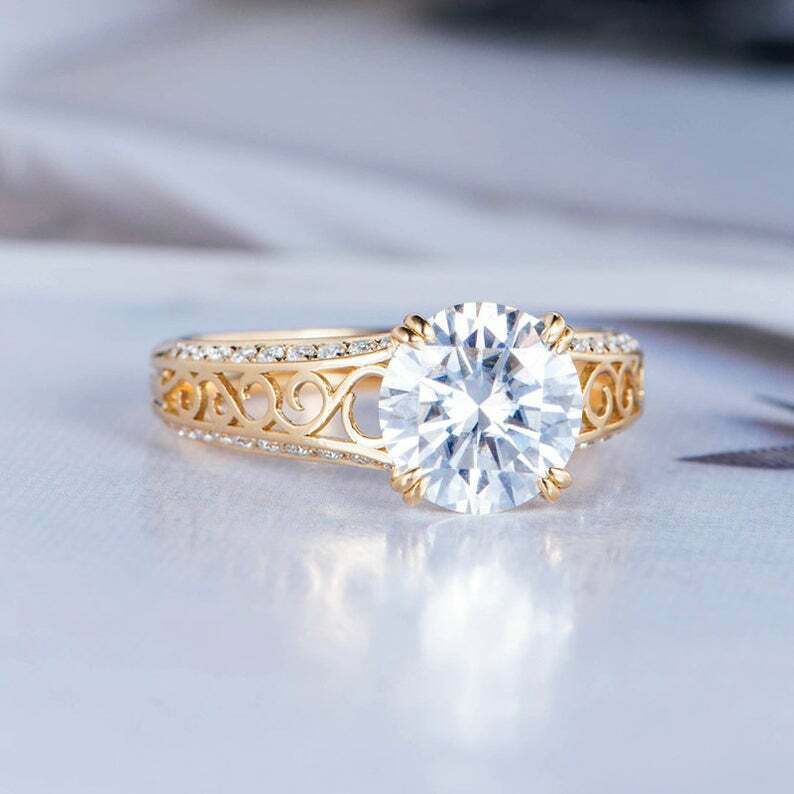 1.5ct Round Cut Diamond Engagement Ring Filigree Solitaire 14k Yellow Gold Over
