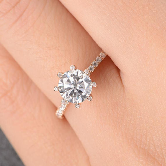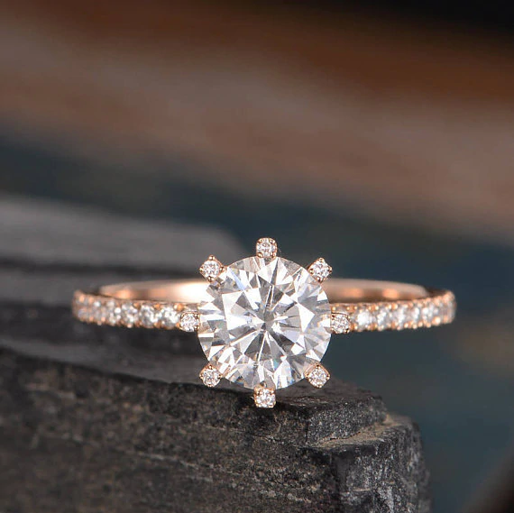 1.5ct Round Cut Diamond Engagement Ring Flower Unique 14k Rose Gold Finish