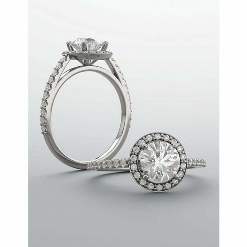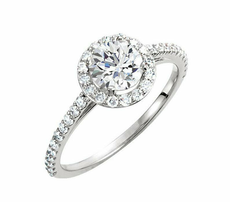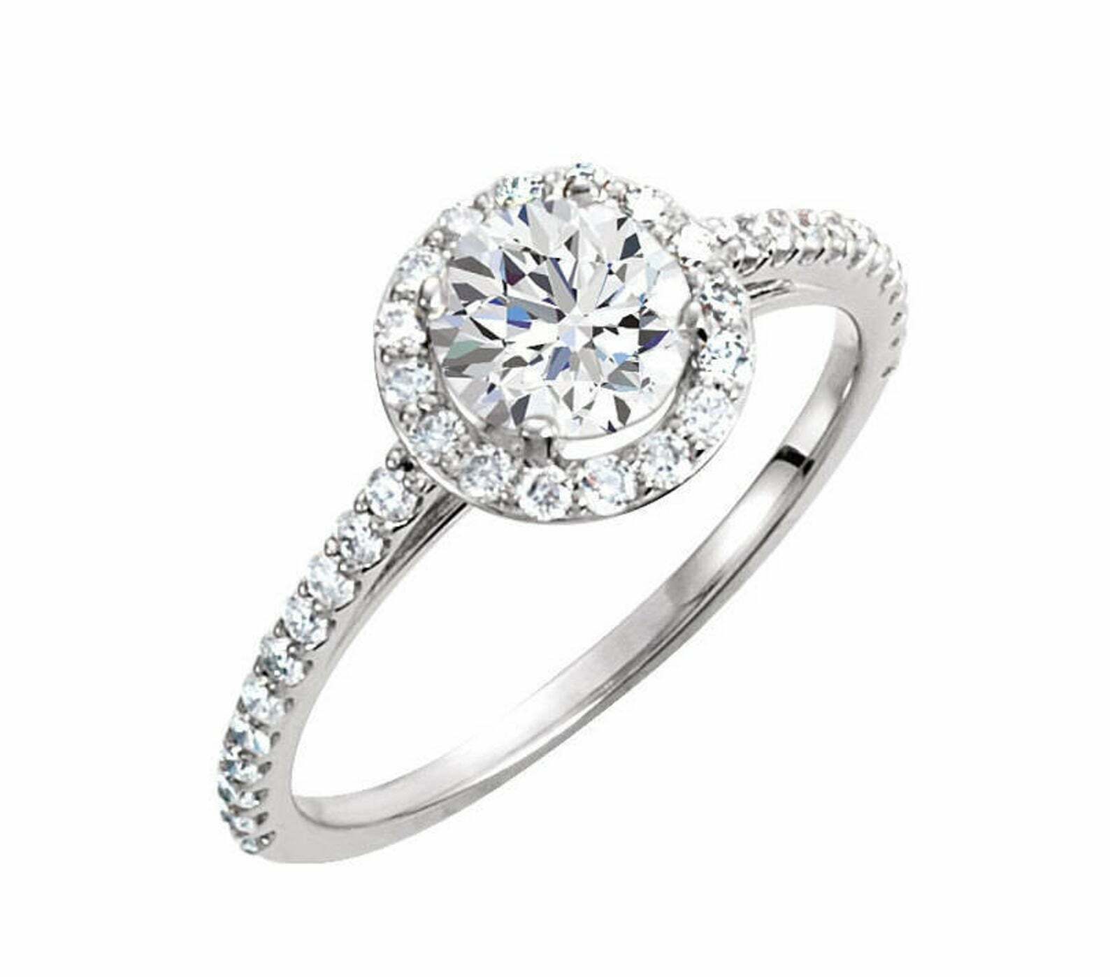 1.5ct Round Cut Diamond Engagement Ring Halo Solitaire 14k White Gold Finish