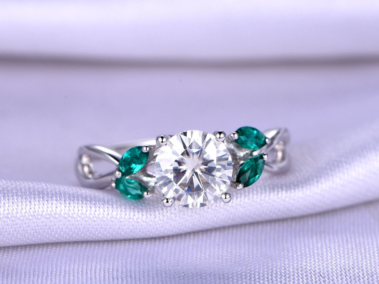 1.5ct Round Cut Diamond Engagement Ring Leaf Vine Split Shank 14k WhiteGold Over