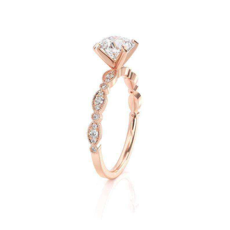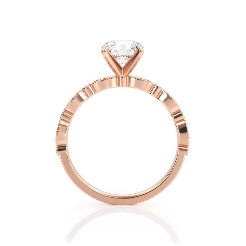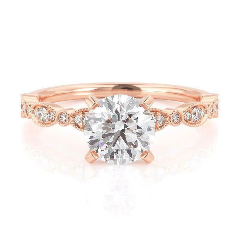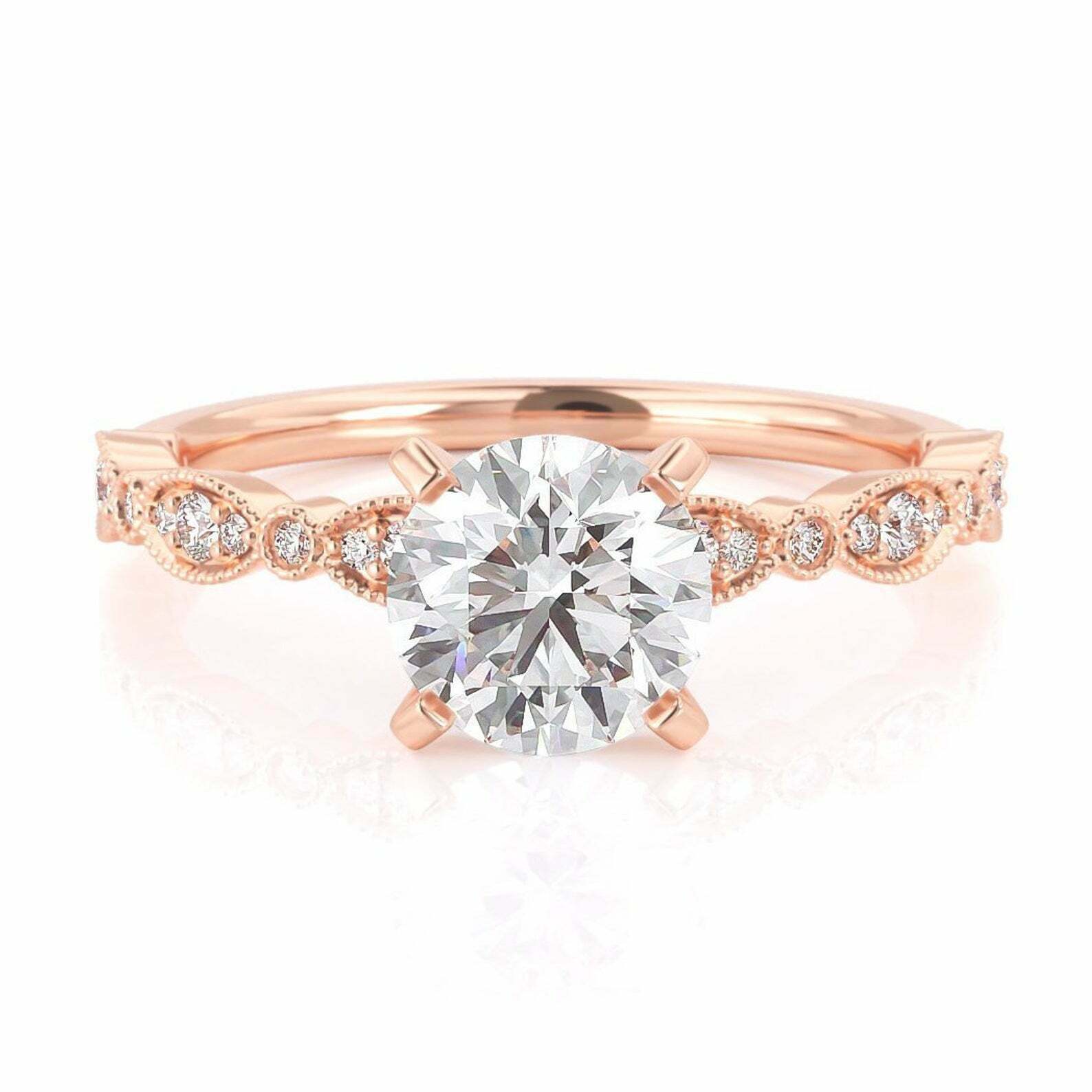 1.5ct Round Cut Diamond Engagement Ring Milgrain Solitaire 14k Rose Gold Finish