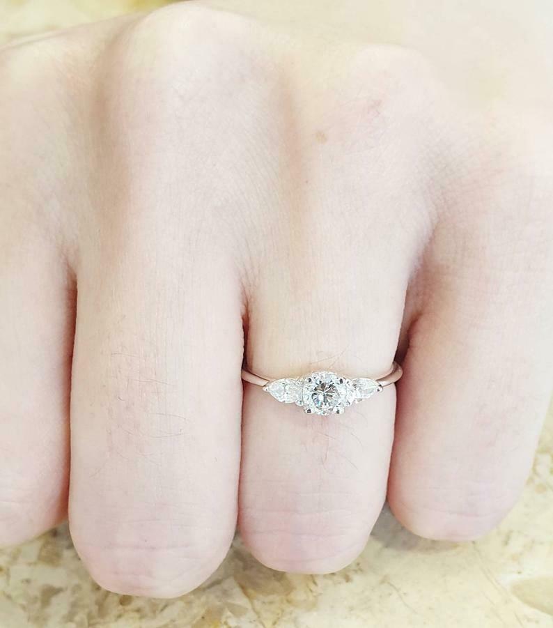1.5ct Round Cut Diamond Engagement Ring Pear Accent Trilogy 14k White Gold Finish