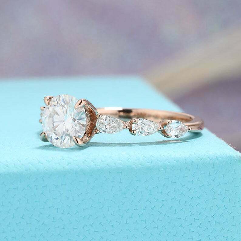 1.5ct Round Cut Diamond Engagement Ring Pear Accents Solitaire 14k Rose Gold Over