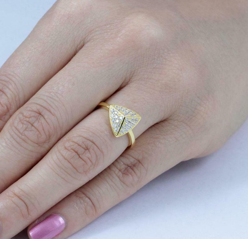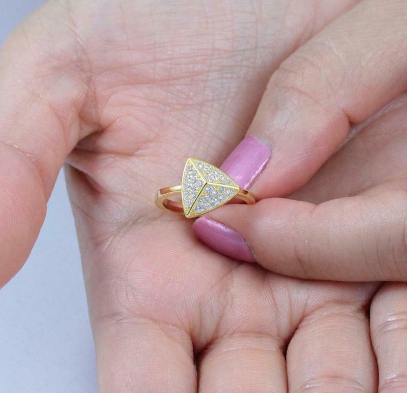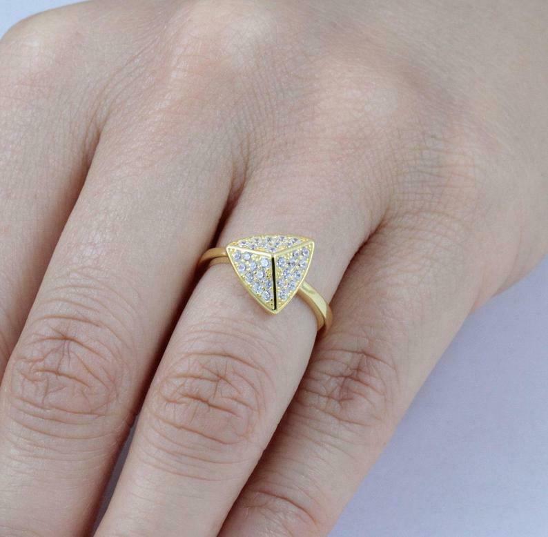1.5ct Round Cut Diamond Engagement Ring Pyramid Inspired 14k Yellow Gold Finish