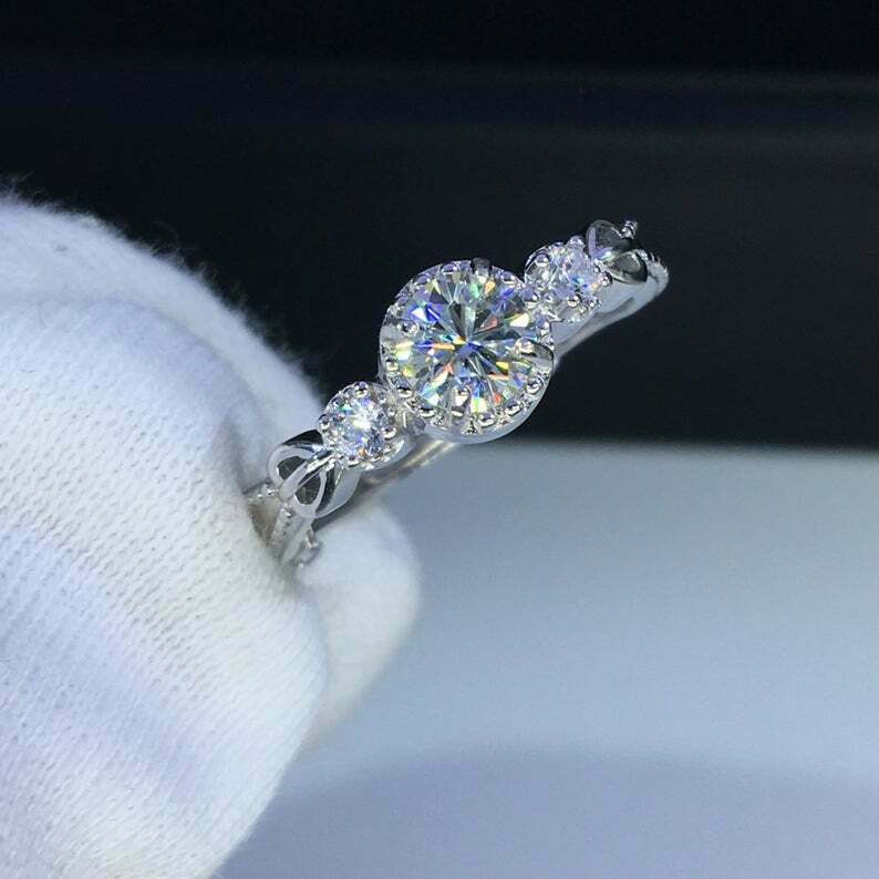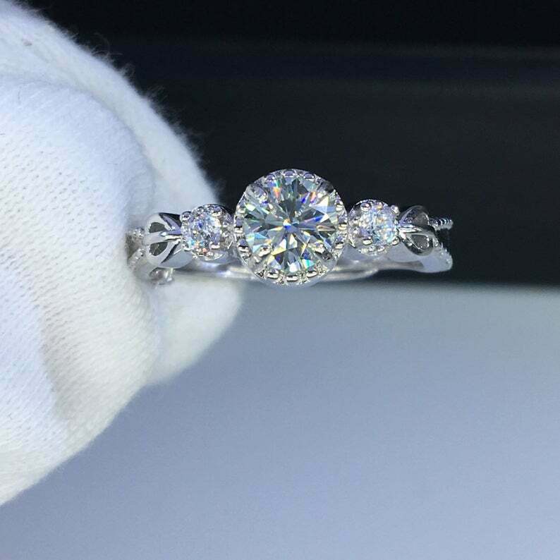 1.5ct Round Cut Diamond Engagement Ring Solitaire Trilogy 14k White Gold Finish