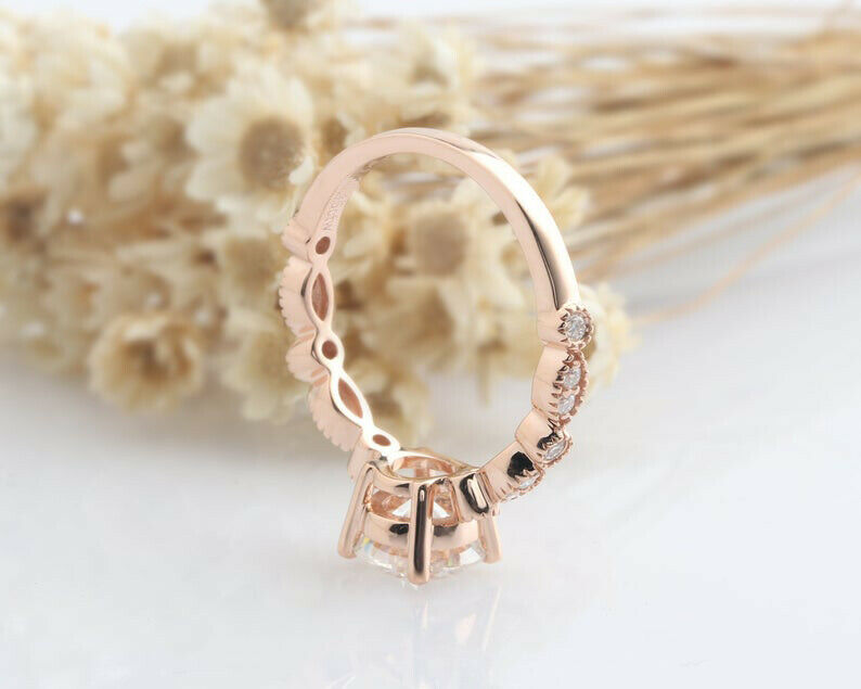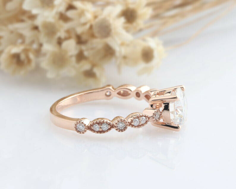 1.5ct Round Cut Diamond Engagement Ring Solitaire Vintage 14k Rose Gold Finish