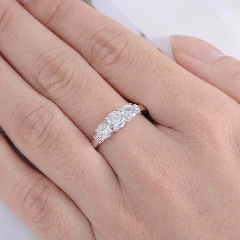 1.5ct Round Cut Diamond Engagement Ring Trilogy Solitaire 18k White Gold Finish