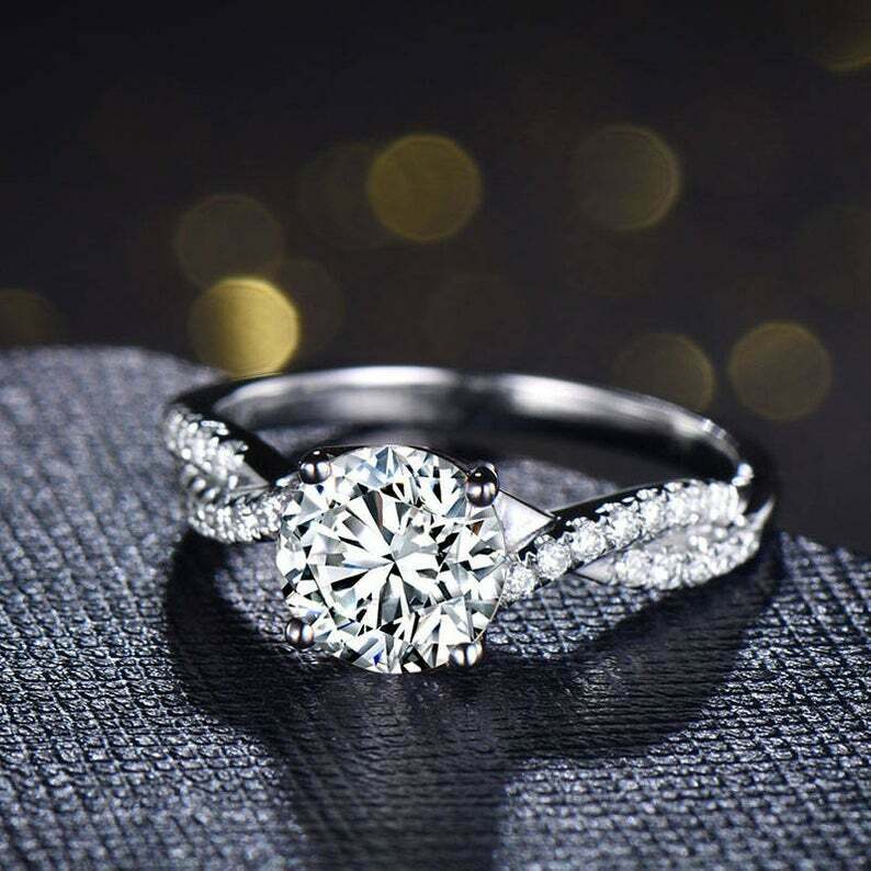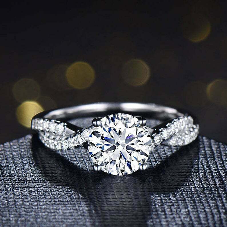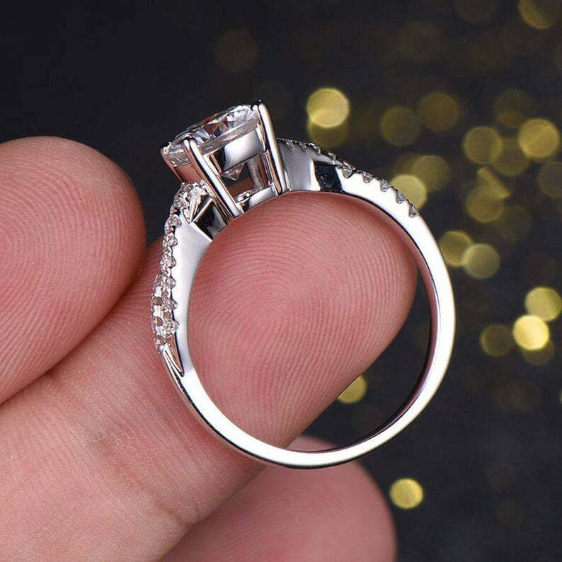 1.5ct Round Cut Diamond Engagement Ring Twisted Promise 14k White Gold Finish
