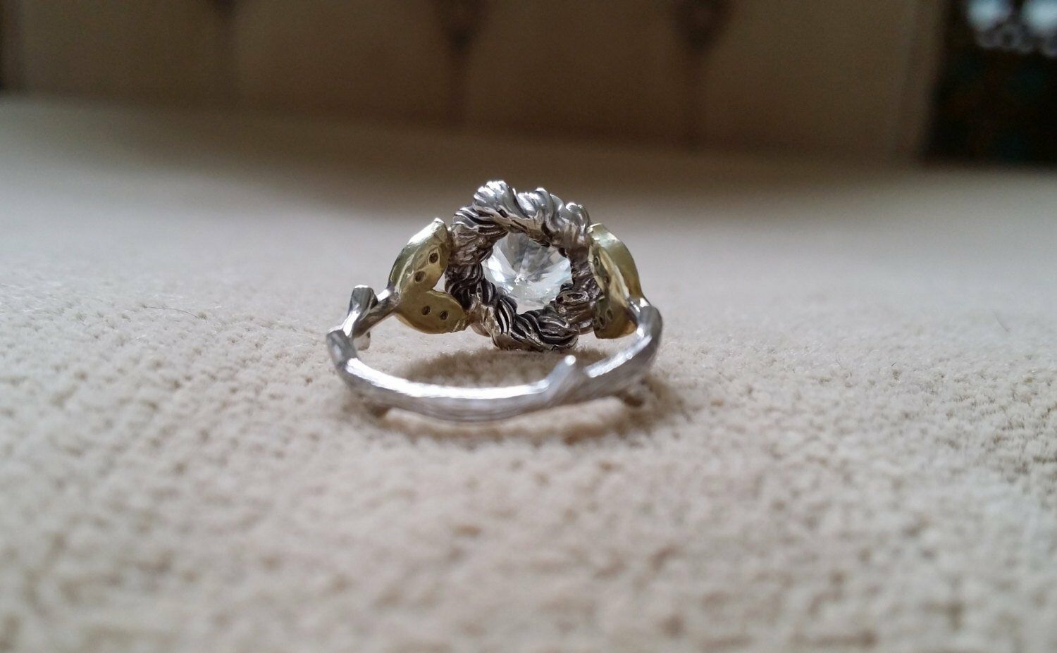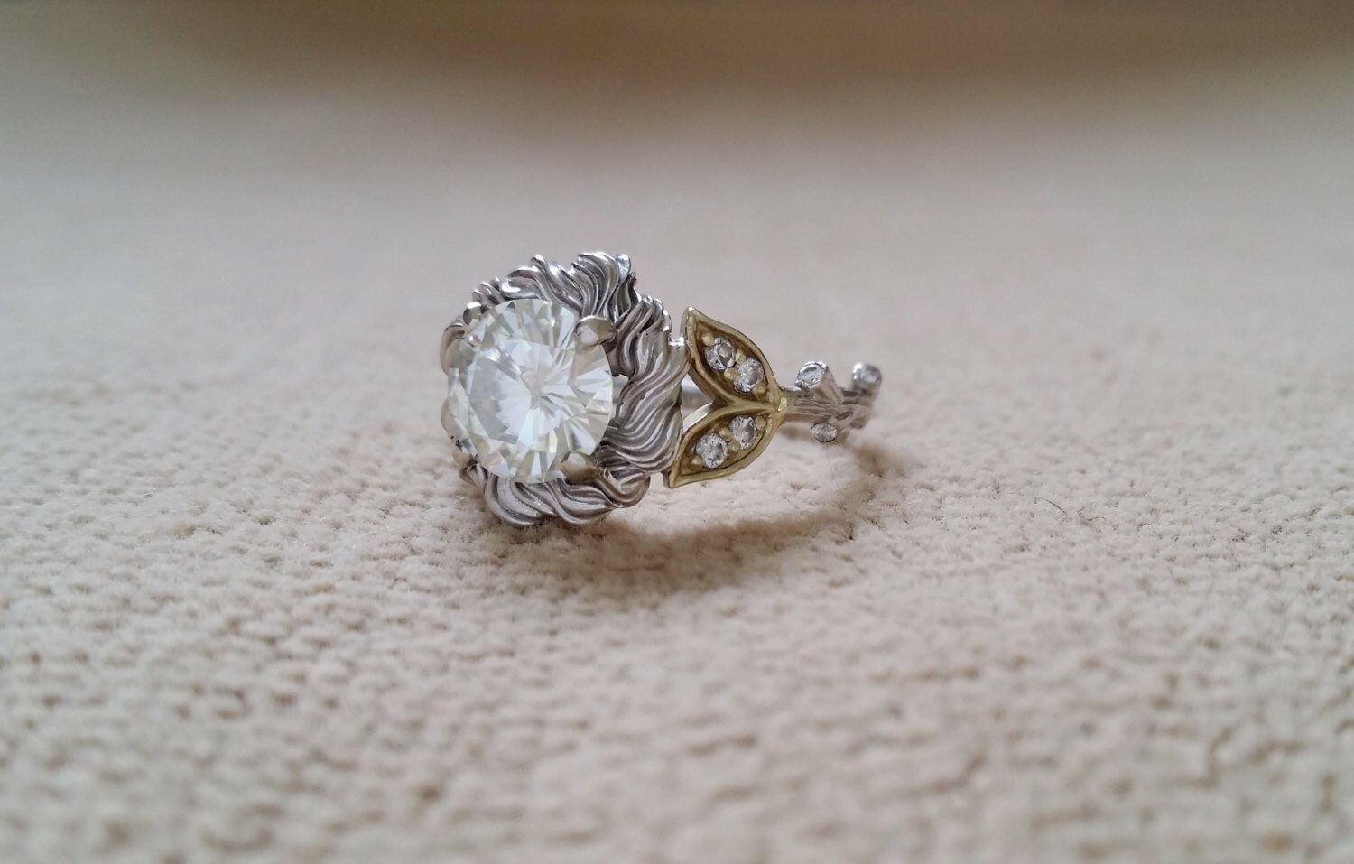 1.5Ct Round Cut Diamond Floral Leaf Design Engagement Ring 14K Dual Gold Finish