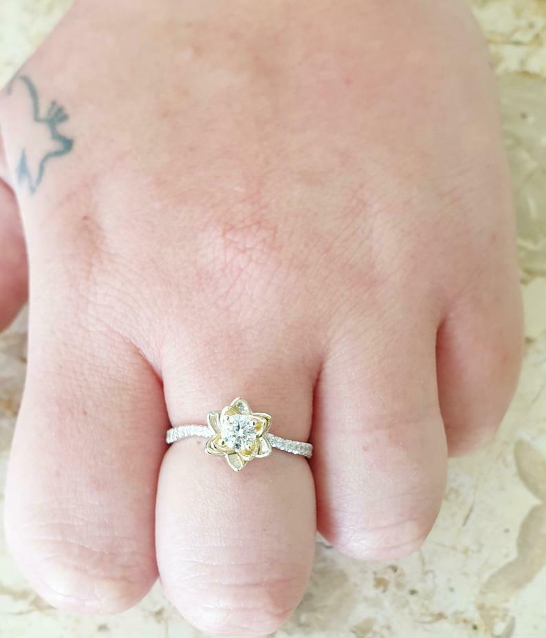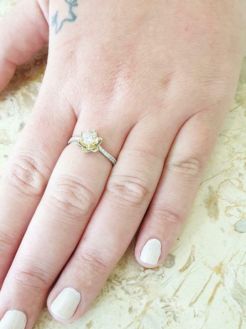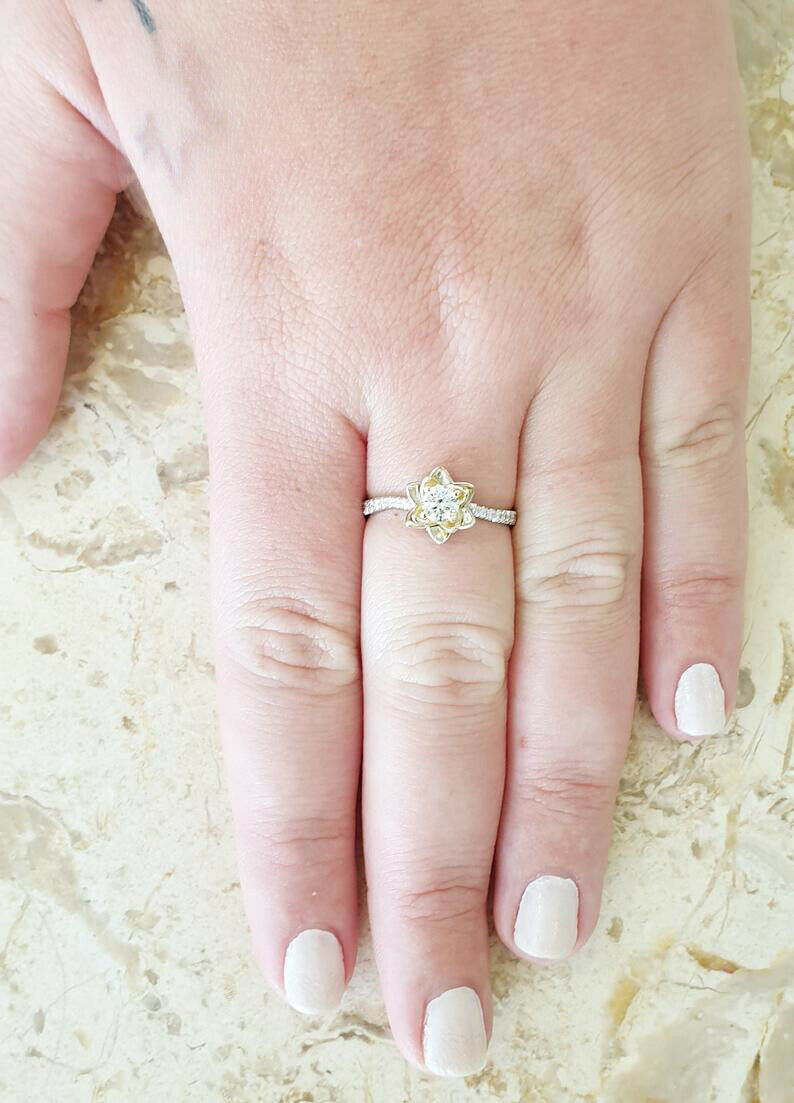 1.5ct Round Cut Diamond Flower Solitaire with Accents Ring 14k Dual Gold Finish