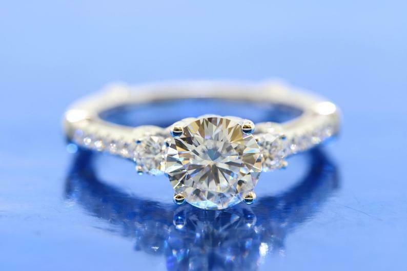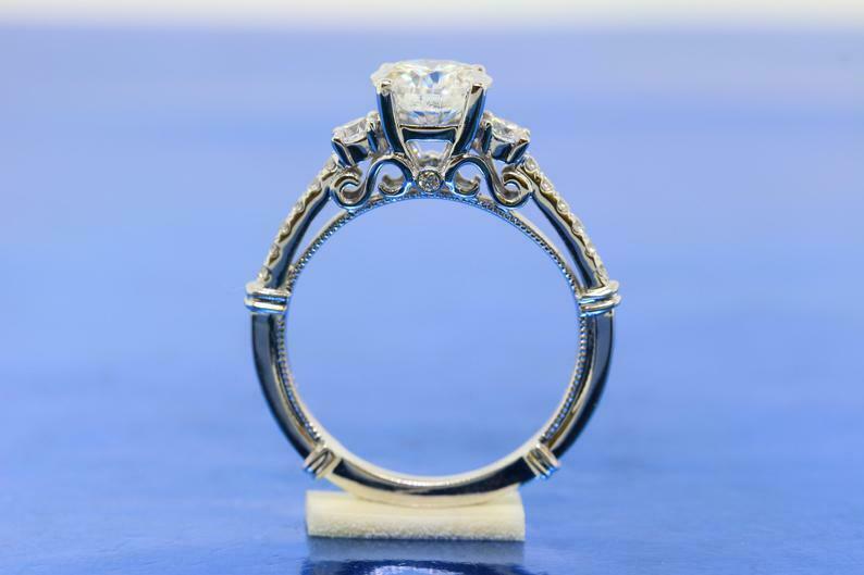 1.5ct Round Cut Diamond Solitaire with Accent Filigree Ring 14k WhiteGold Finish