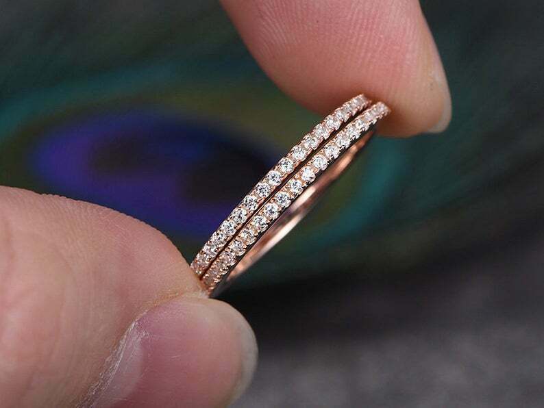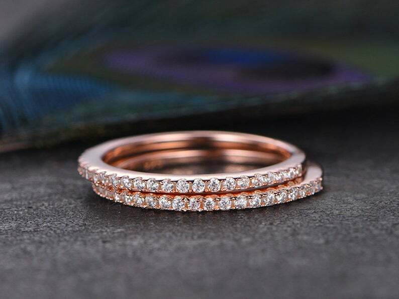 1.5ct Round Cut Diamond Stackable Half Eternity Wedding Bands 14k Rose Gold Over