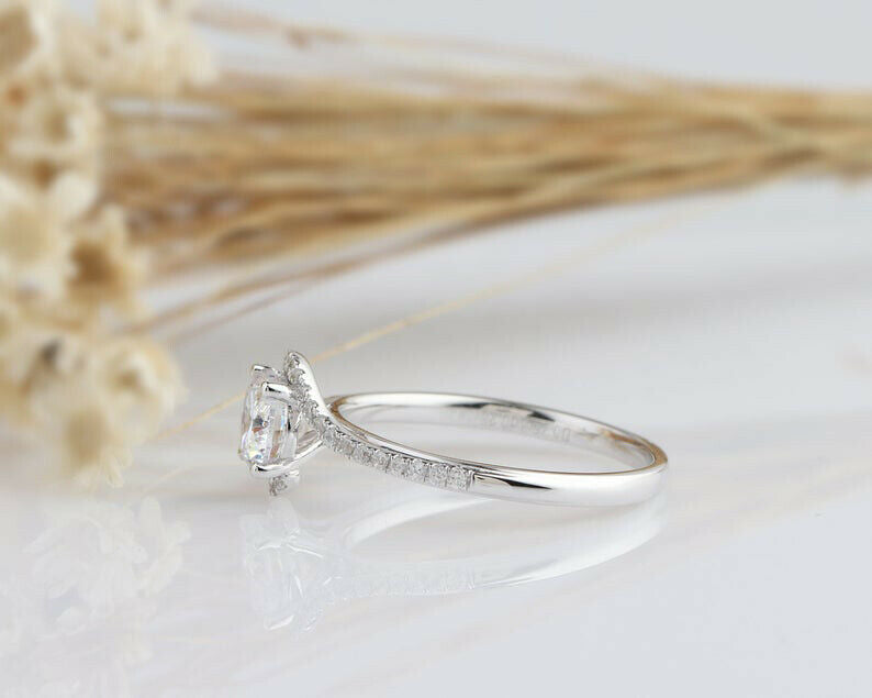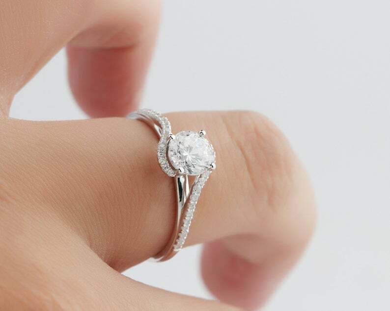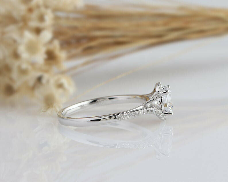 1.5ct Round Cut Diamond Swirl Solitaire with Accents Ring 14k White Gold Finish