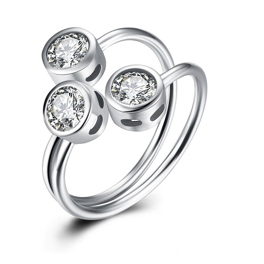 1.5Ct Round Cut Diamond Unique Three Stone Engagement Ring 14K White Gold Finish