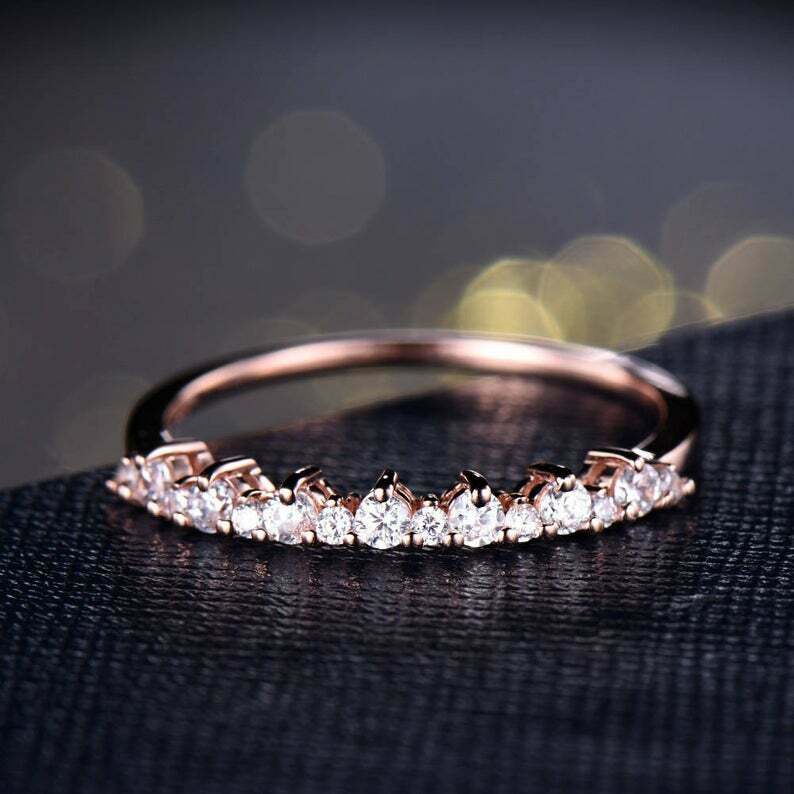 1.5ct Round Cut Diamond Wedding Band Half Eternity Women 14k Rose Gold Finish