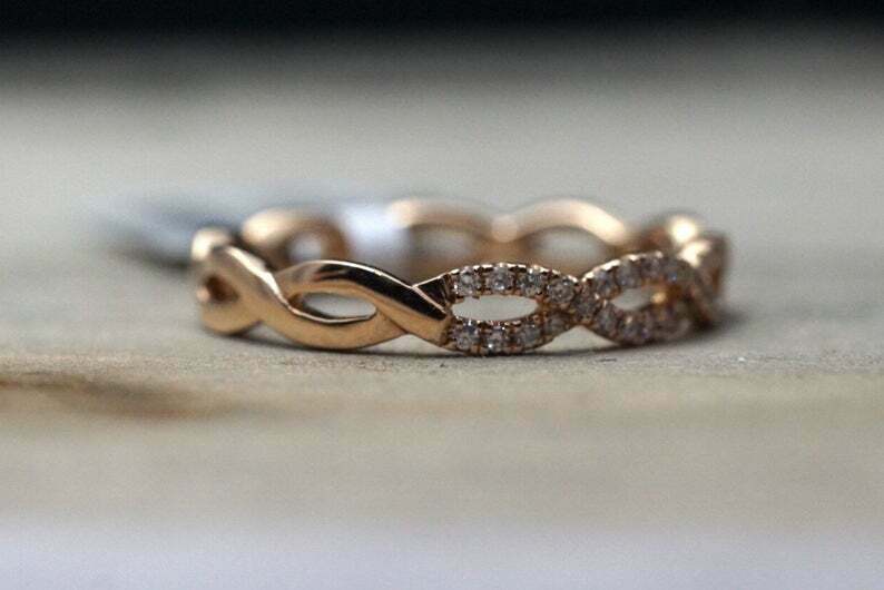 1.5ct Round Cut Diamond Wedding Band Infinity Half Eternity 14k Rose Gold Finish