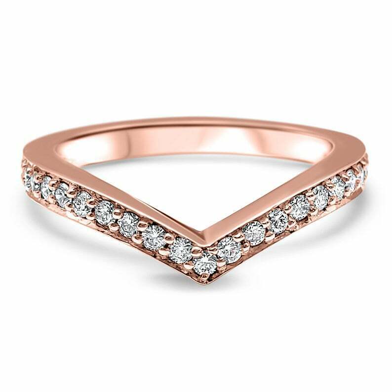 1.5ct Round Cut Diamond Wedding Band V Shaped Petite Curved 14k Rose Gold Finish