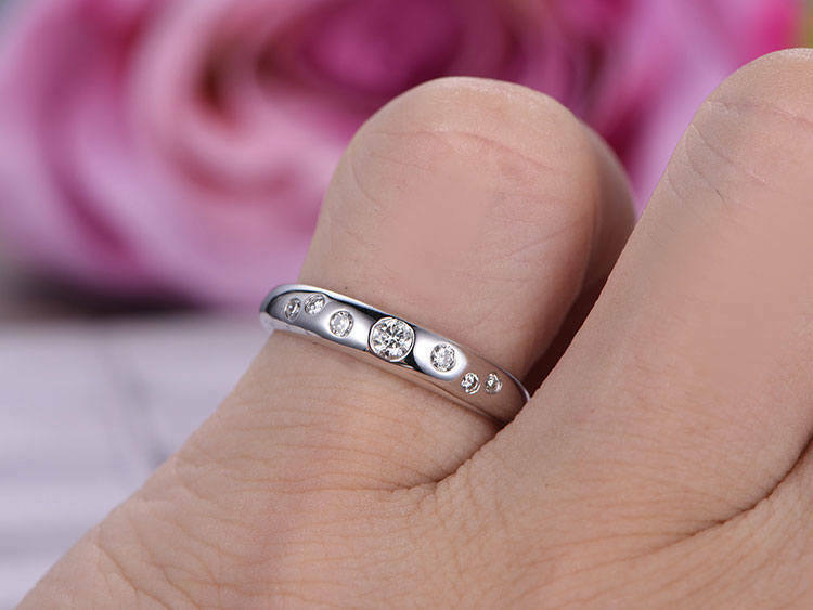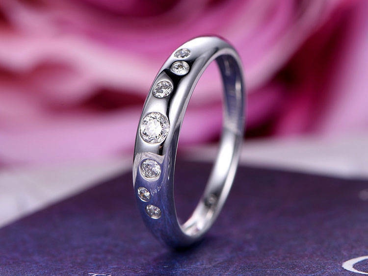 1.5ct Round Cut Diamond Wedding Ring Band Flush Set Stylish 14k WhiteGold Finish