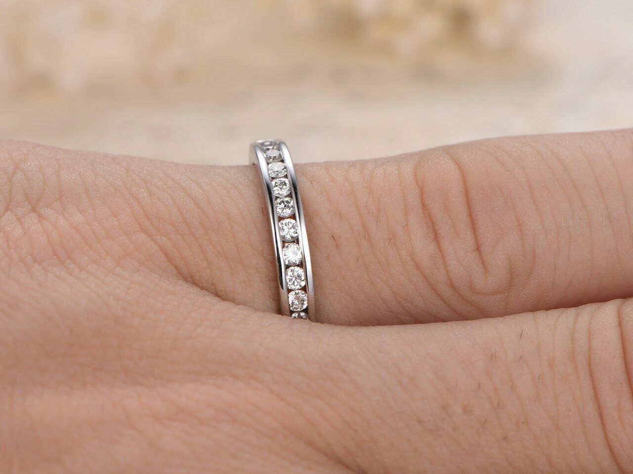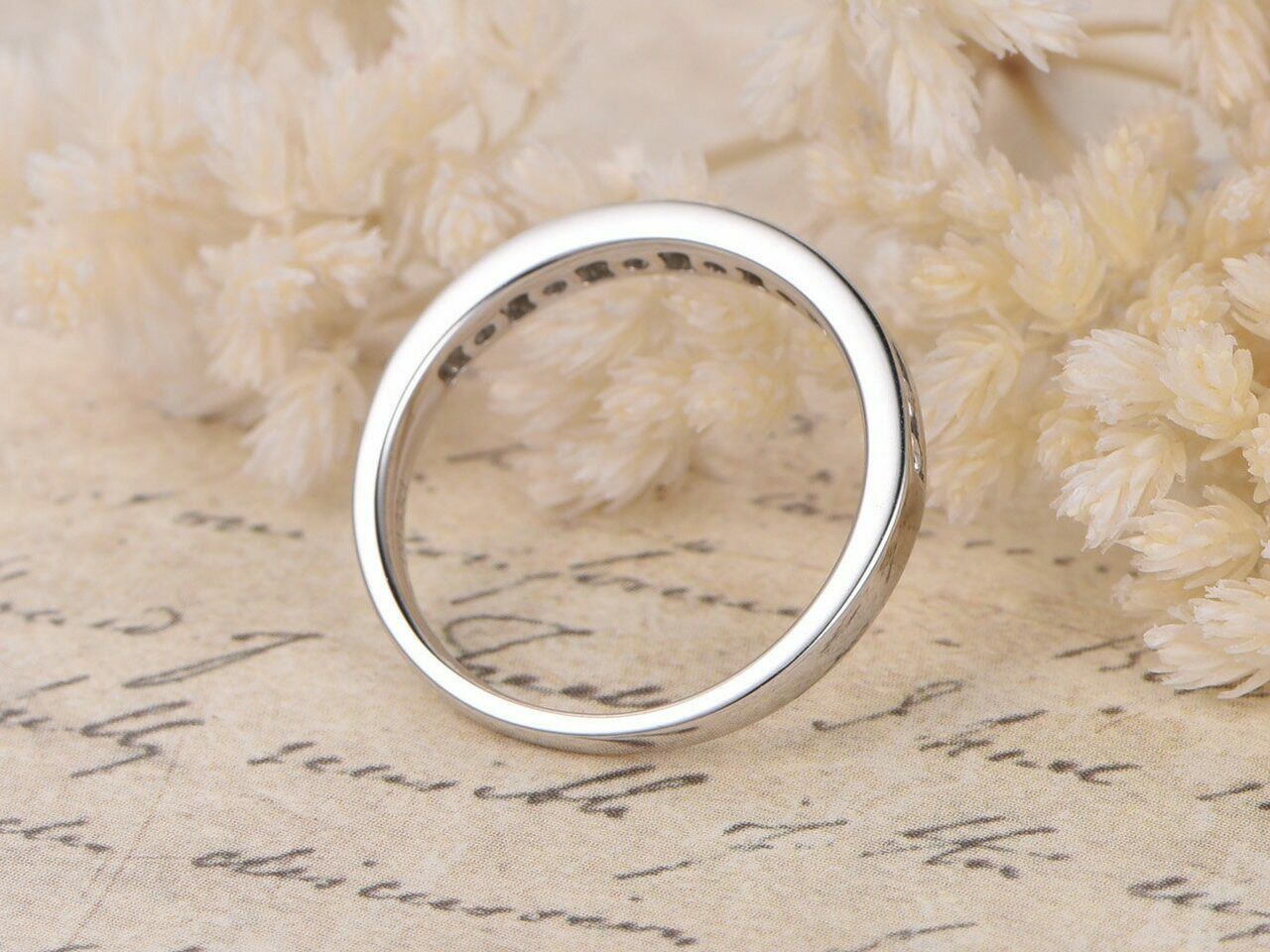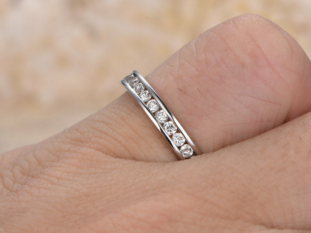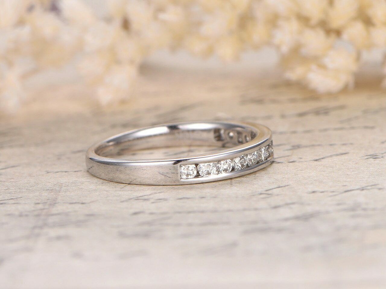 1.5ct Round Cut Diamond Wedding Ring Band Half Eternity 14k White Gold Finish