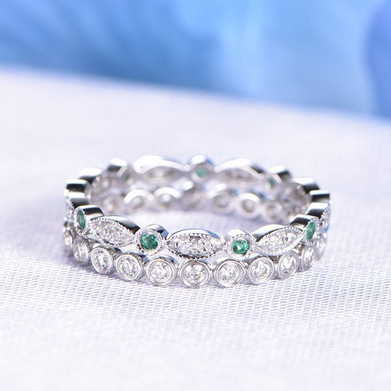 1.5ct Round Cut Diamond Wedding Ring Band Stackable Eternity 14k White Gold Over