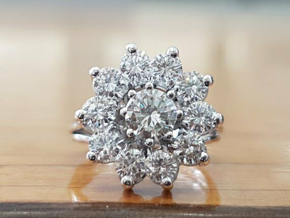 1.5ct Round Cut VVS1/D Diamond Floral Engagement Ring 14k White Gold Finish