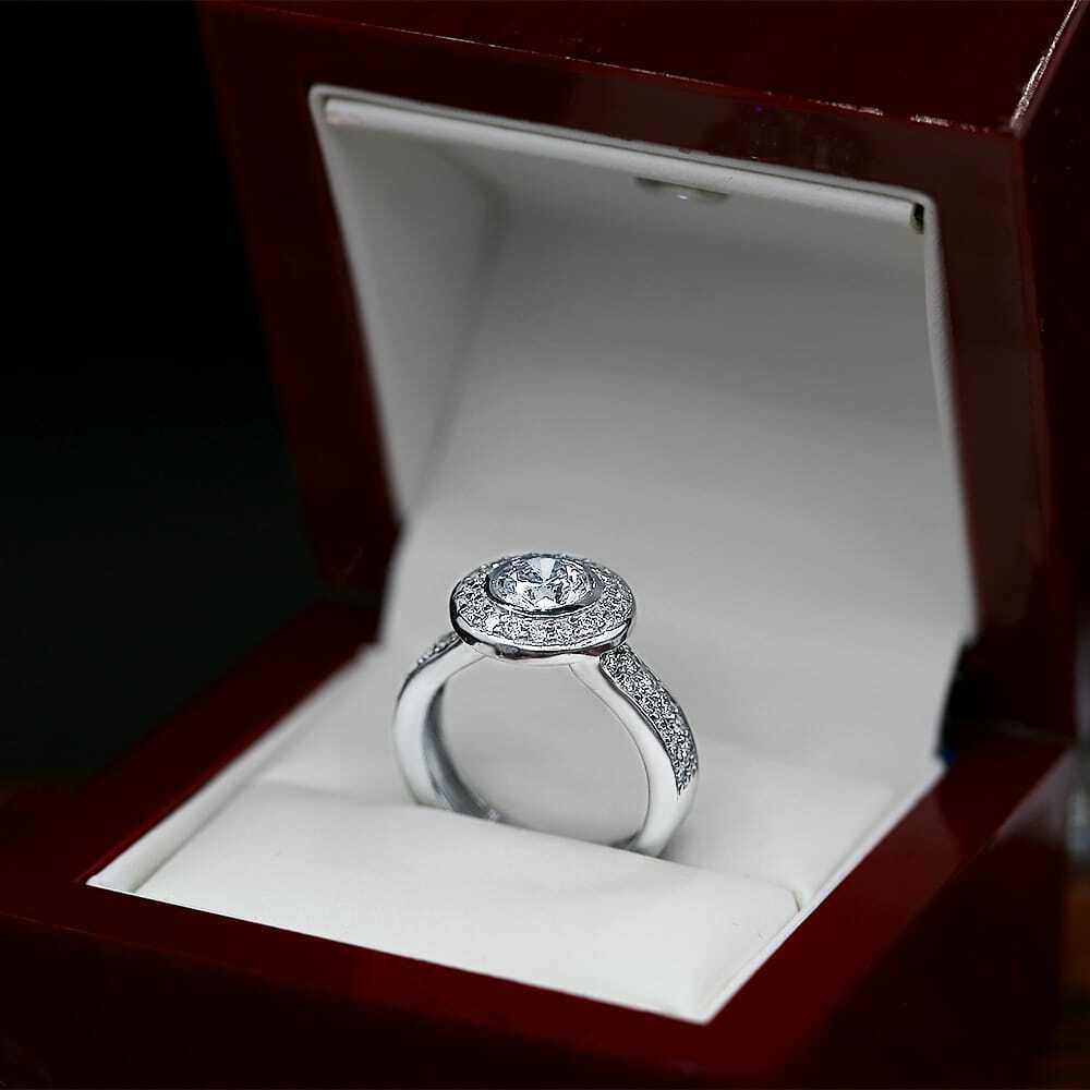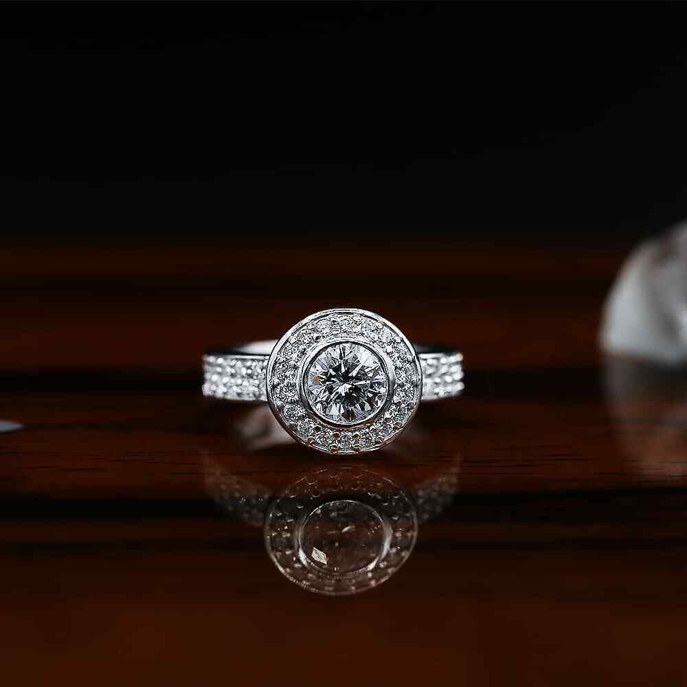 1.5ct Round Cut VVS1 Diamond Engagement Ring 14k WhiteGold Finish Halo Solitaire