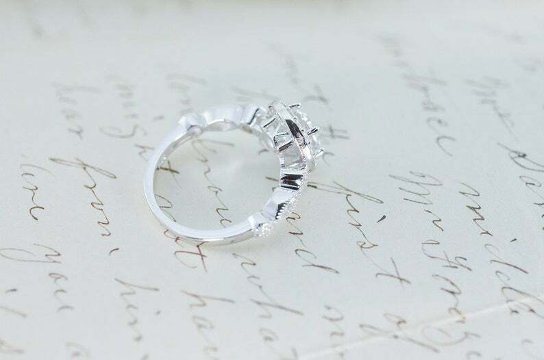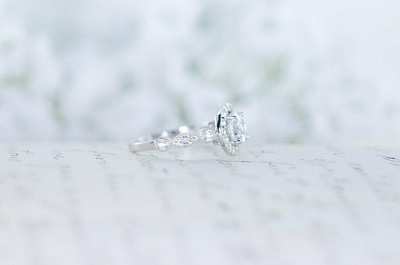 1.5ct Round Cut VVS1D Diamond Engagement Ring Halo Vintage 14k White Gold Finish