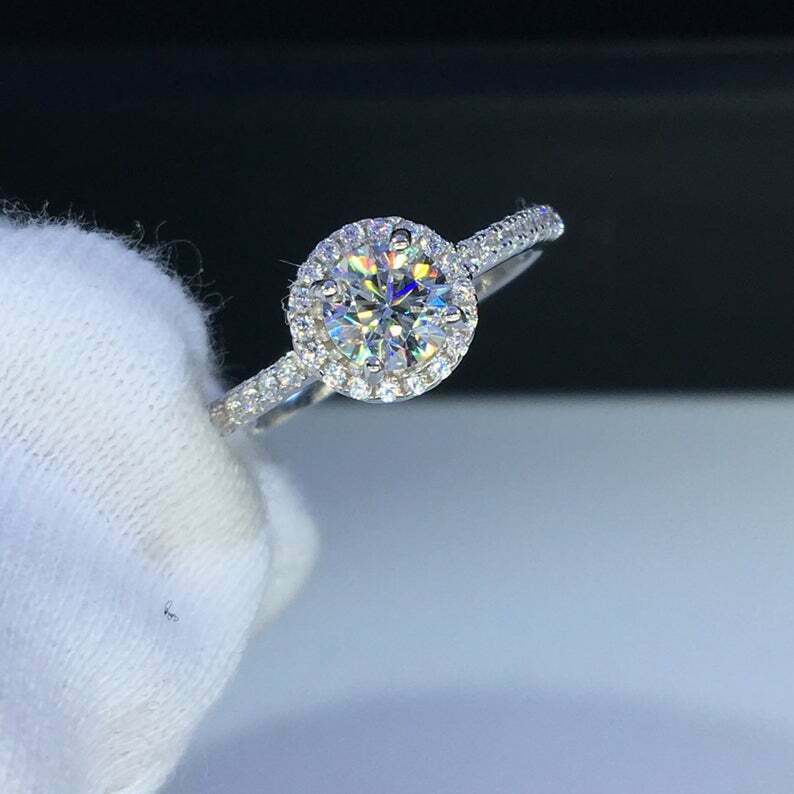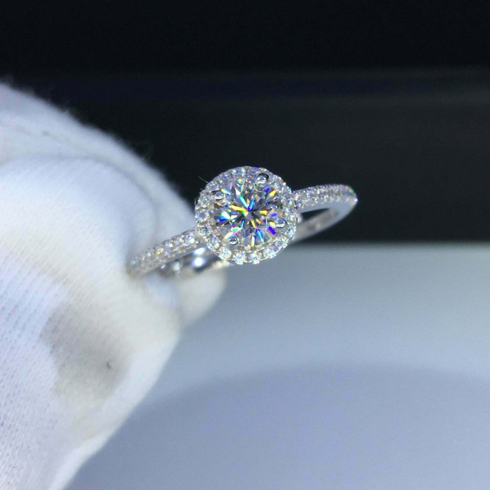 1.5ct Round Cut VVS1D Diamond Engagement Ring Halo Women 14k White Gold Finish