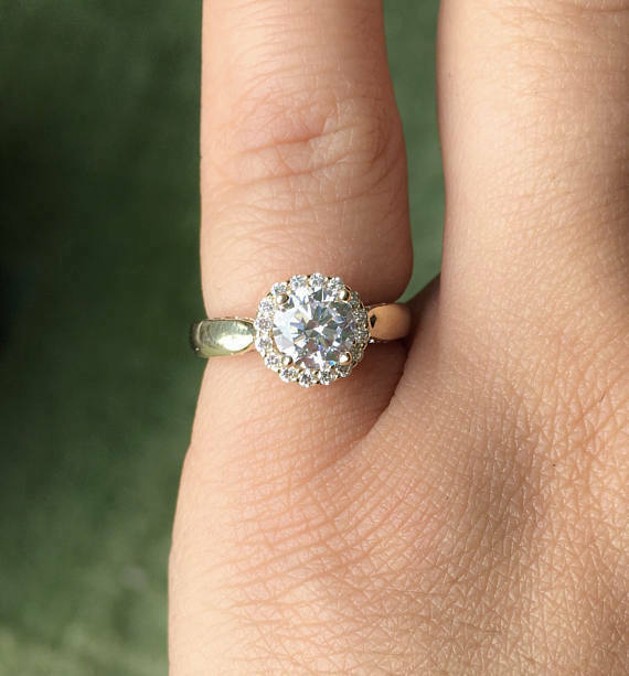 1.5Ct Round Cut VVS1D Diamond Floral Halo Engagement Ring 14K Yellow Gold Finish