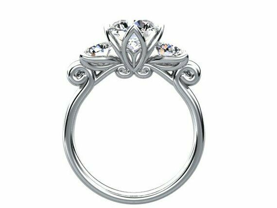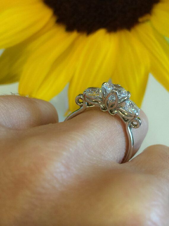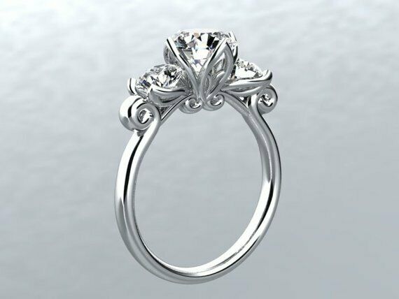 1.5ct Round Cut VVS1D Diamond Three Stone Engagement Ring 14k White Gold Finish