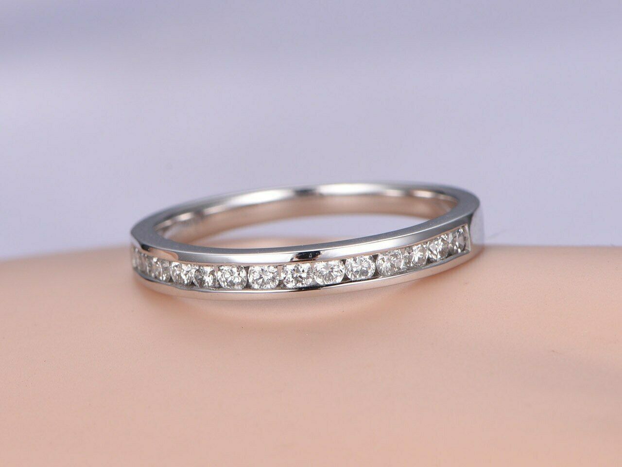 1.5ct Round Diamond Channel Set Half Eternity Wedding Band 14k White Gold Finish