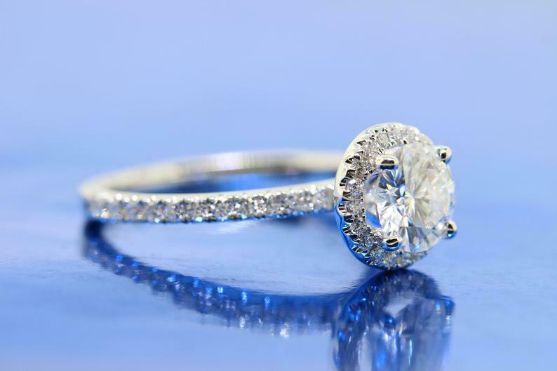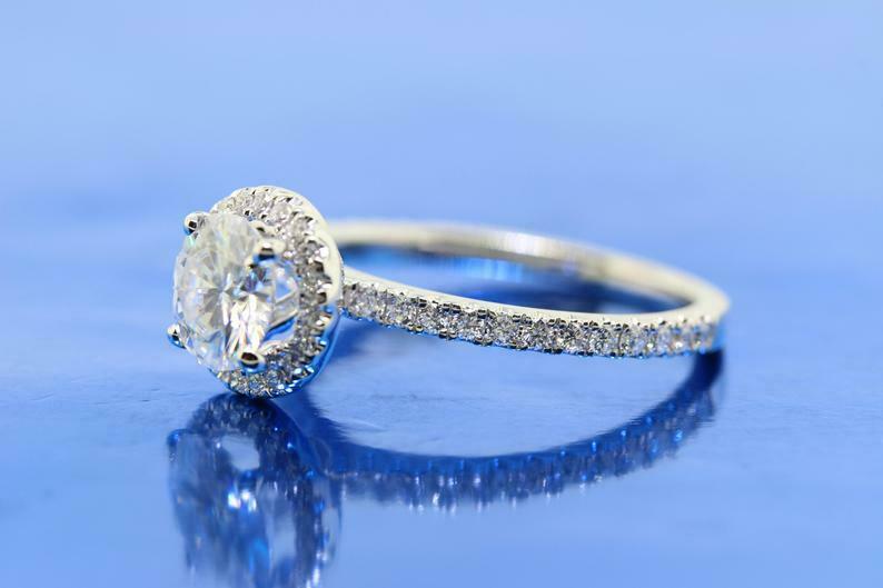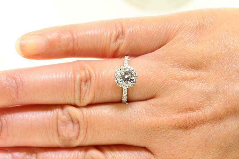 1.5ct Round Diamond Engagement Ring Solitaire 14k White Gold Finish with Accents