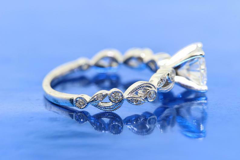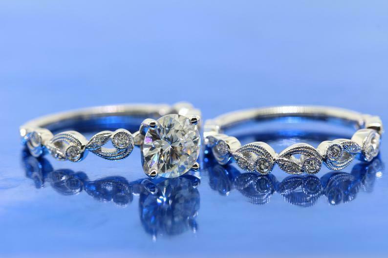 1.5ct Round Diamond Solitaire Accent Vintage Bridal Set Engagement  Ring 14k White Gold Over