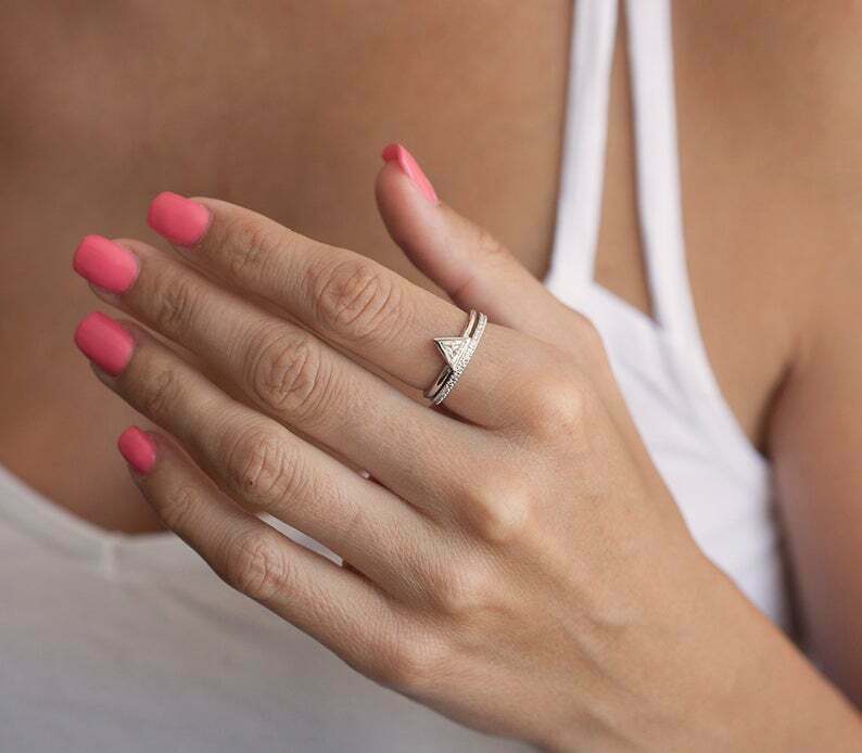 1.5ct Trillion Cut Diamond Engagement Ring 14k White Gold Finish Bridal Set Band