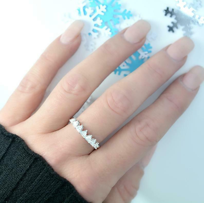 1.5ct Trillion Cut Diamond Wedding Band Triangular Crown 14k White Gold Finish