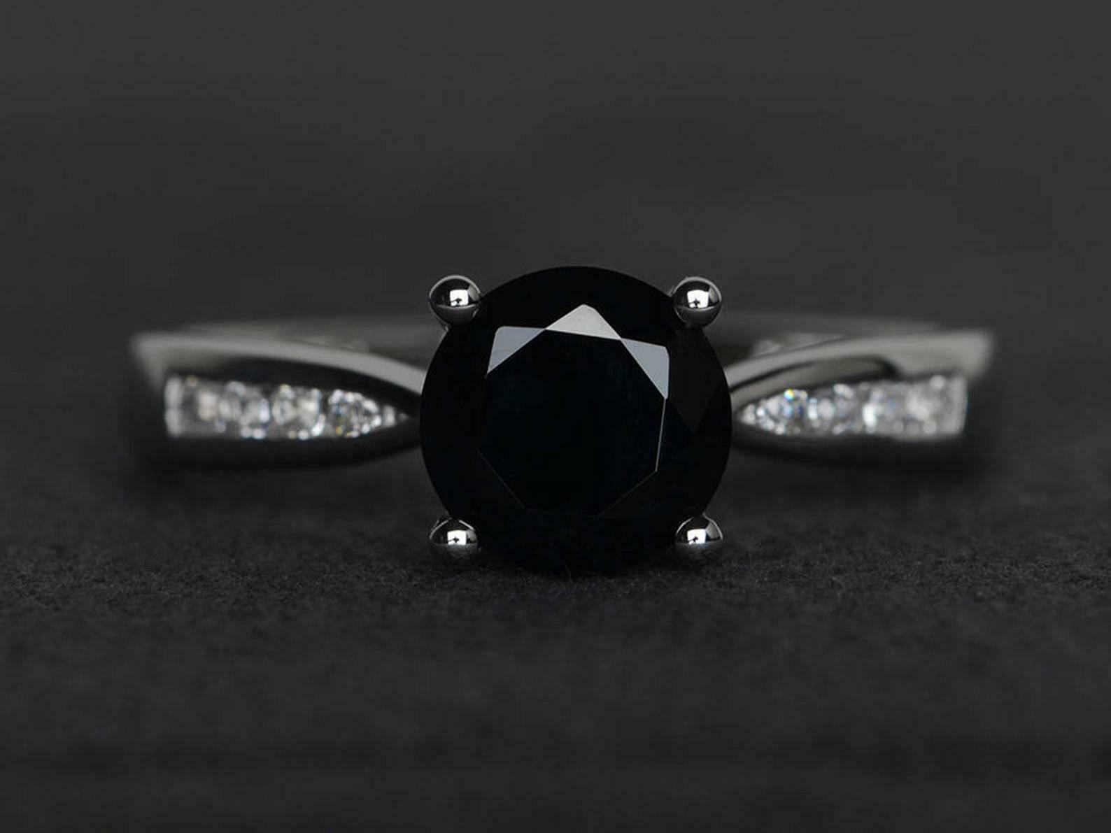 1.65ct Engagement Ring Round Black Diamond Accents Solitaire 14k White Gold Over