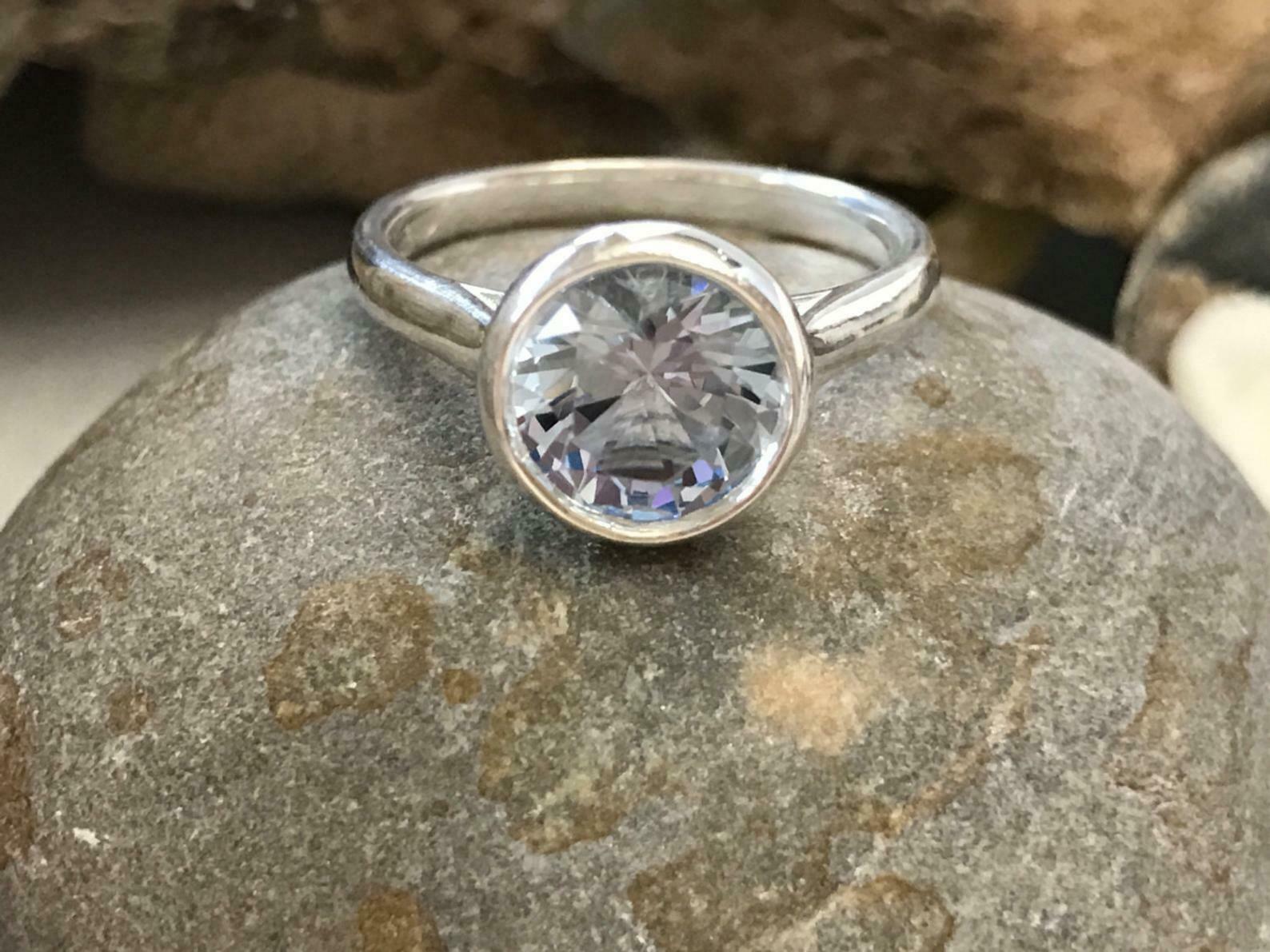 1.65ct Engagement Ring Round Cut Diamond Bezel Set Solitaire 14k White Gold Over