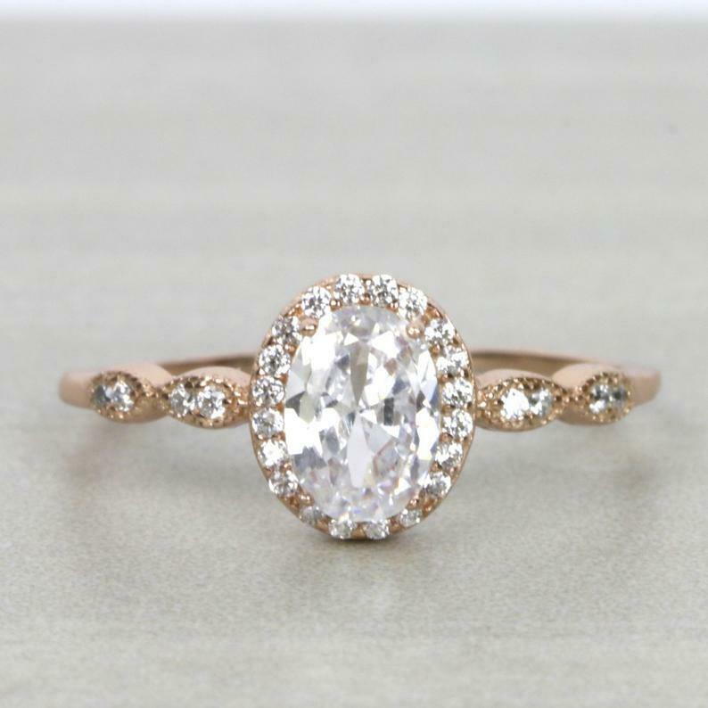 1.65ct Oval Cut Diamond Engagement Ring Halo Women Solitaire 14k Rose Gold Over